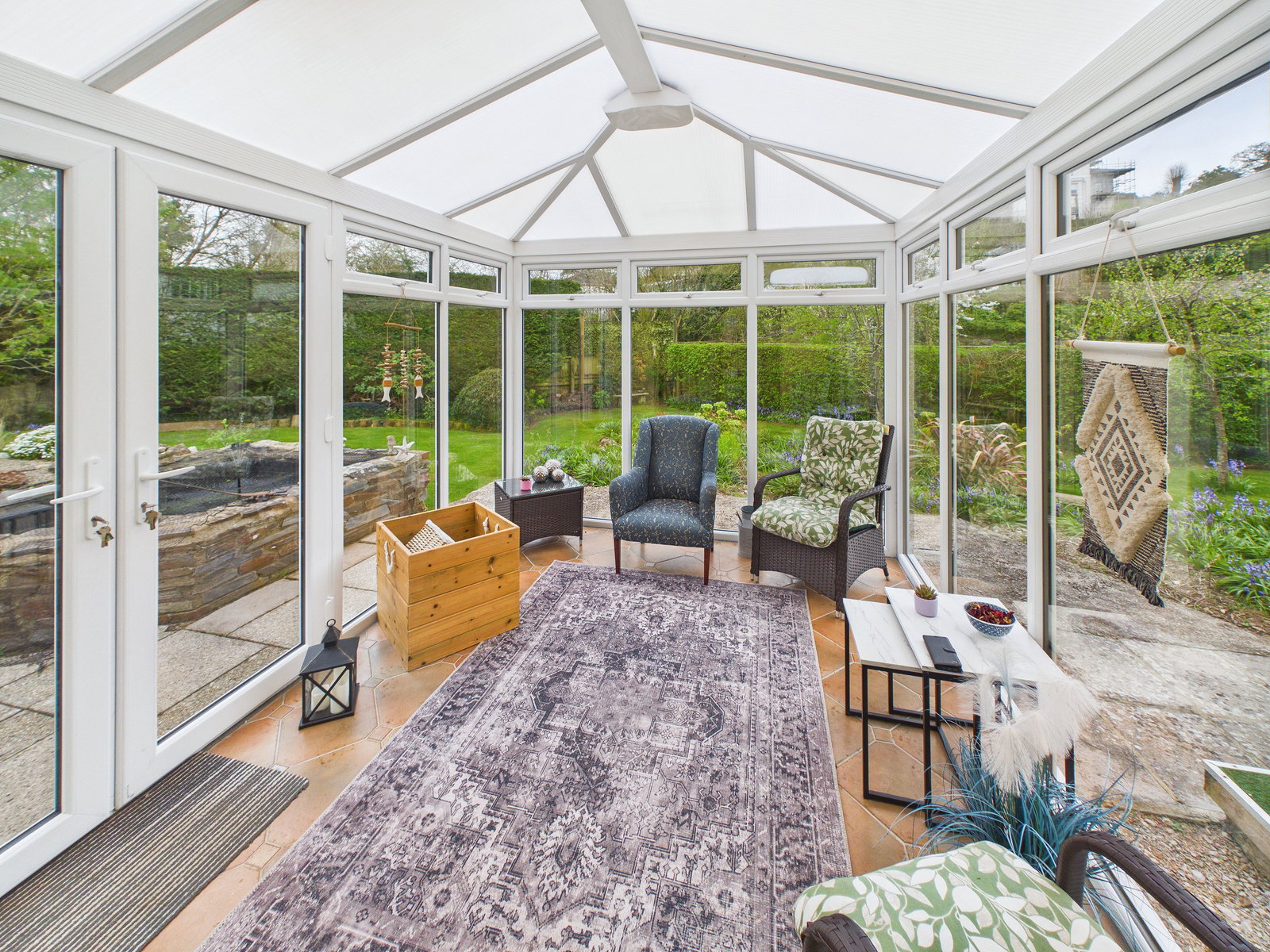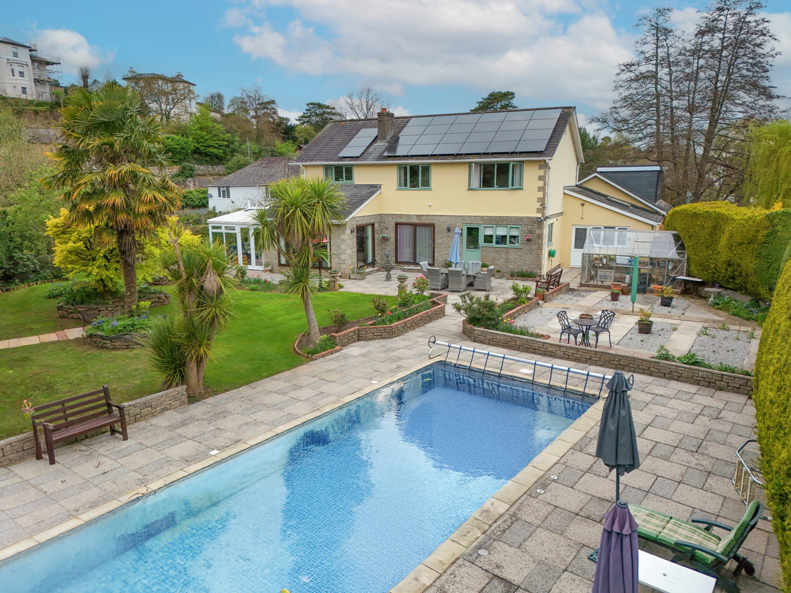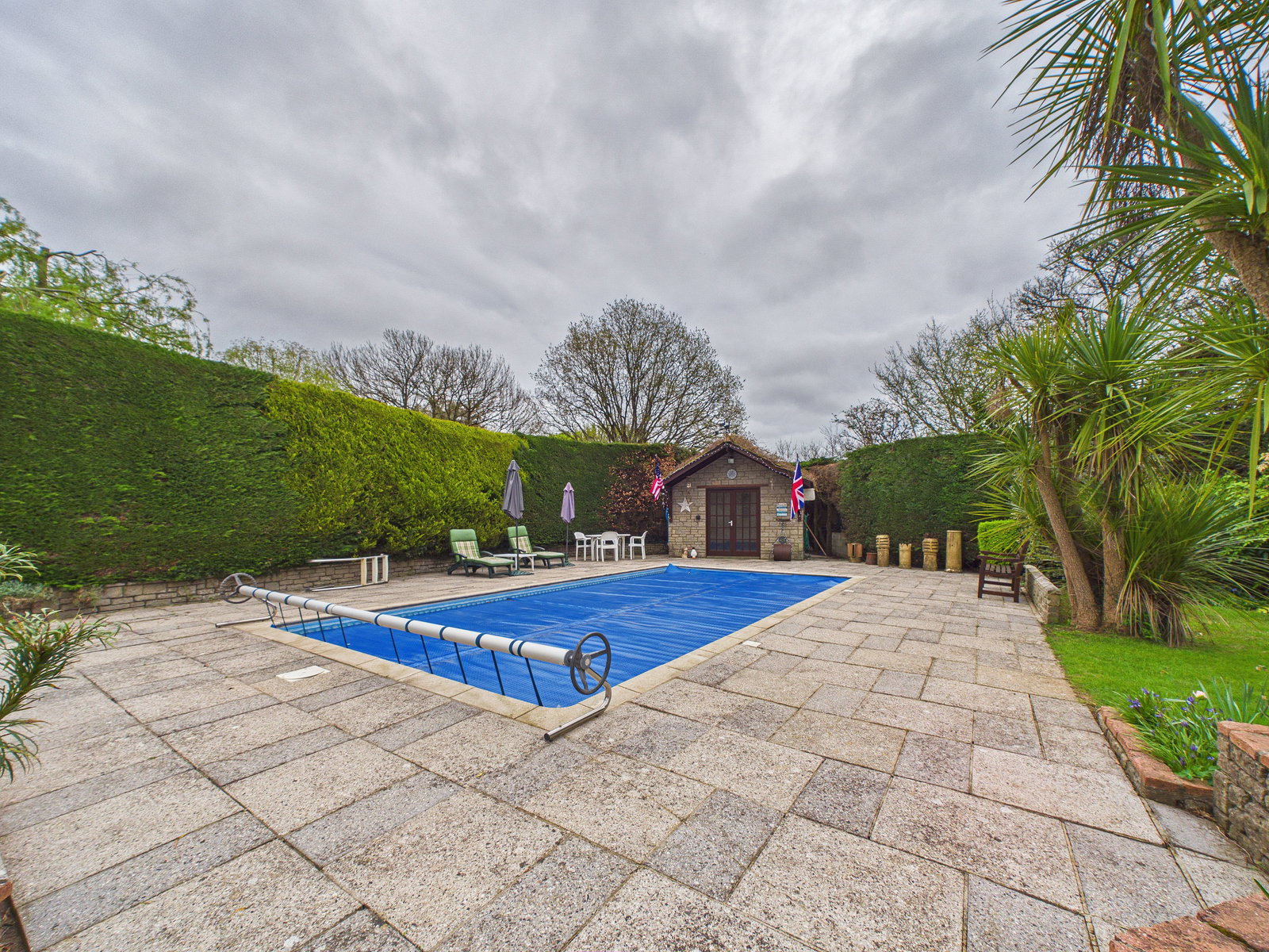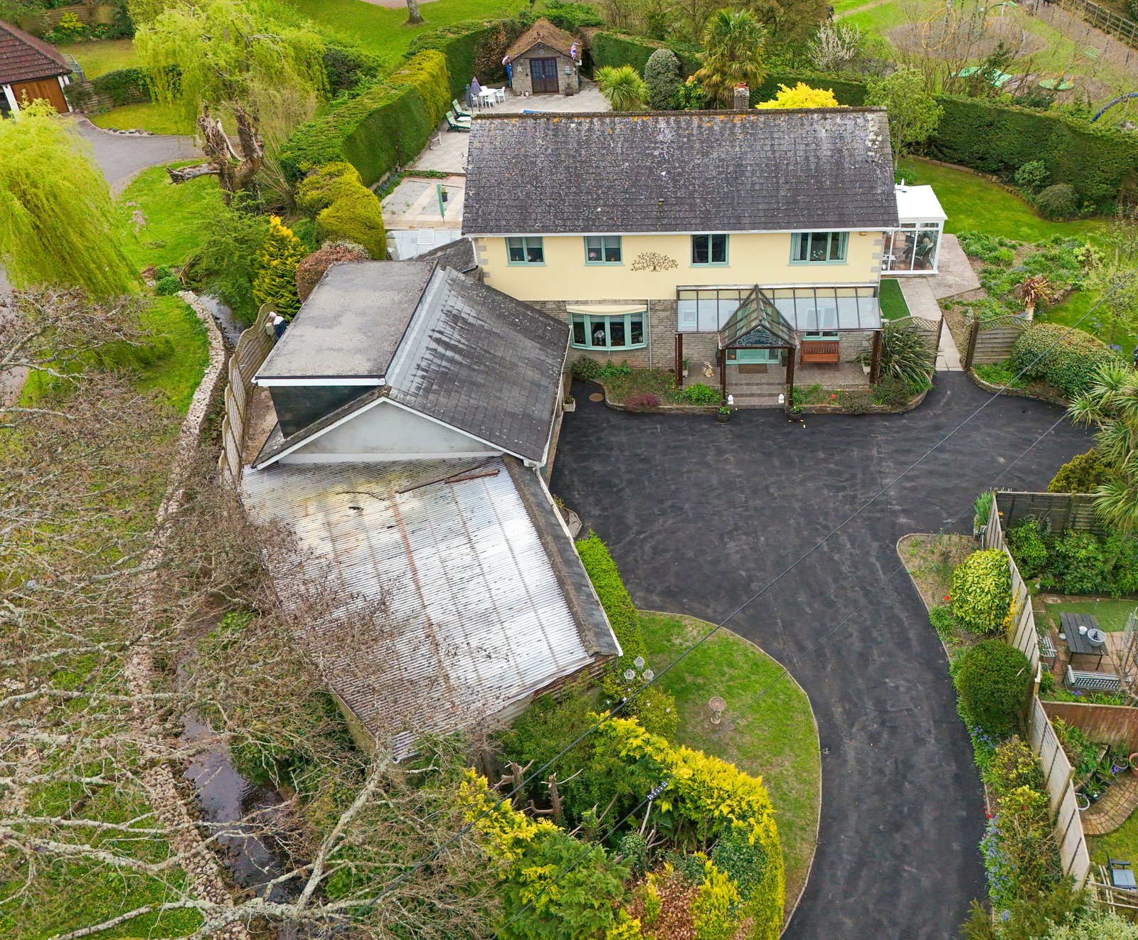 A individual, architect designed, four/five-bedroom detached home in a tucked-away village, semi-rural location with almost four acre garden beautifully landscaped, a heated swimming pool (funded by solar panelling), double garage with first floor office and further garage/workshop. The beautifully presented and versatile accommodation would suit a wide range of buyers and offers potential for an annexe (subject to necessary planning). Internal viewings of this stunning and unique home are recommended to appreciate the location, accommodation and gardens on offer.