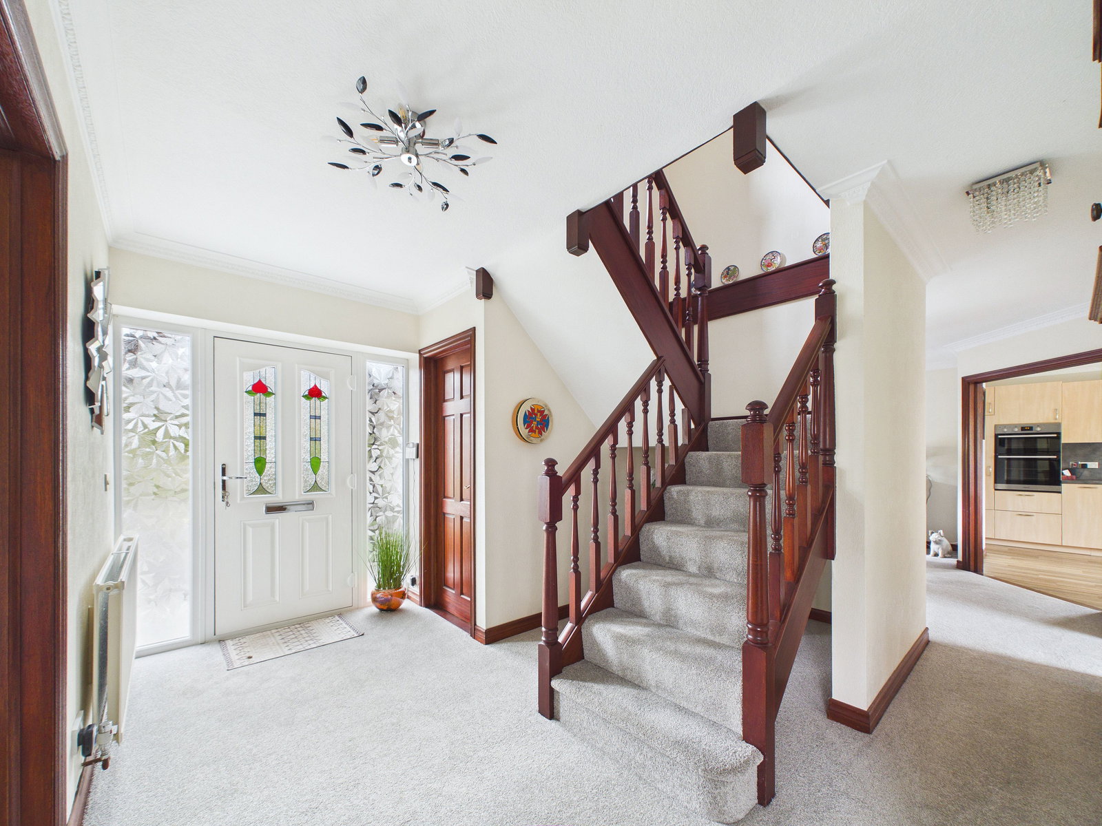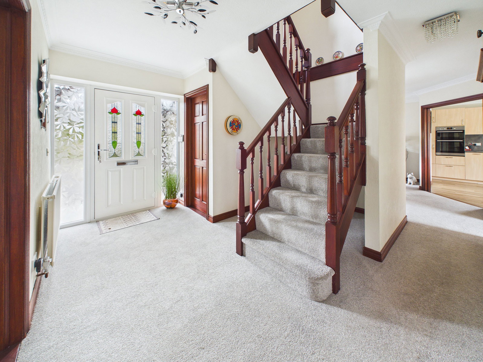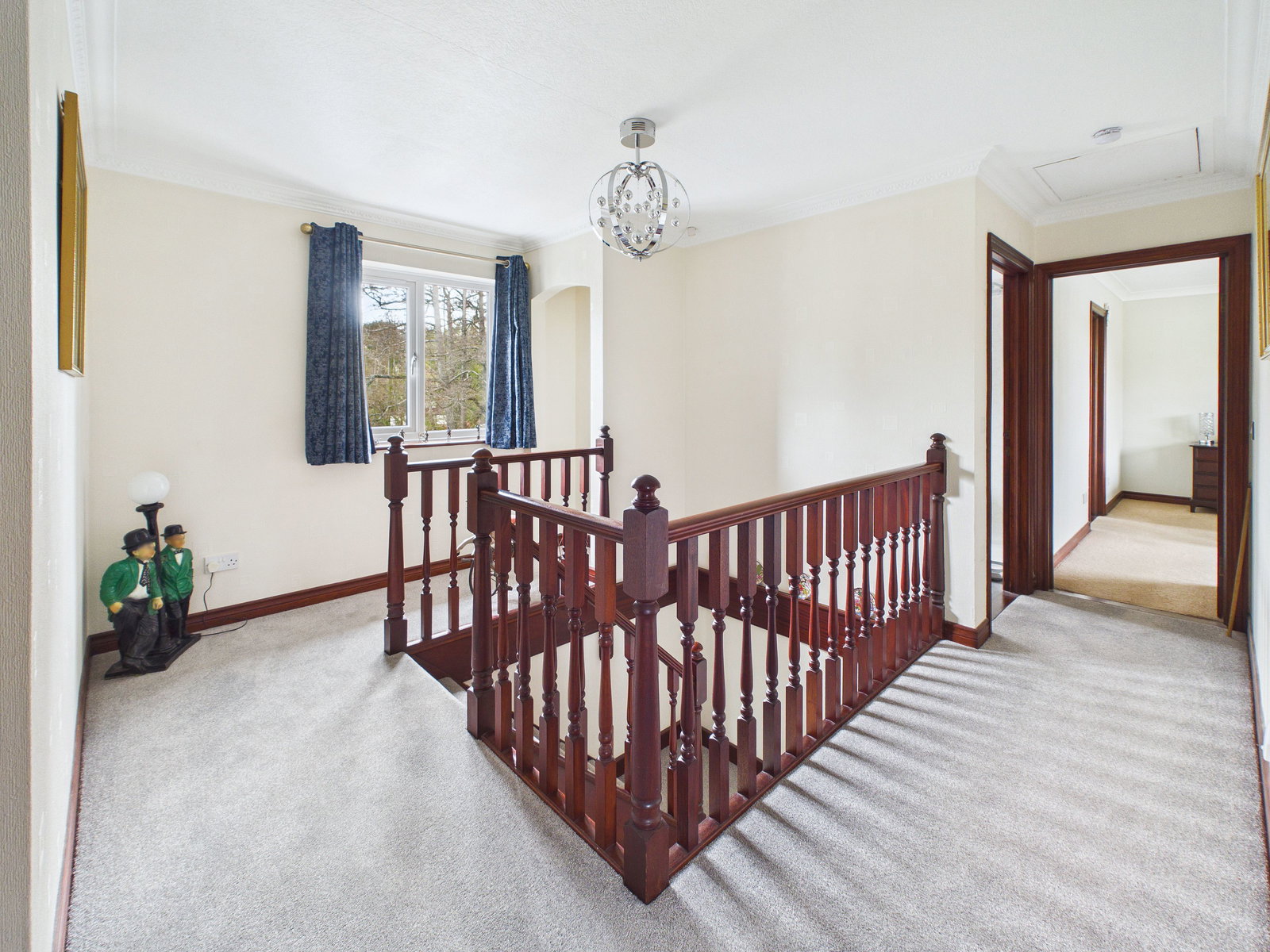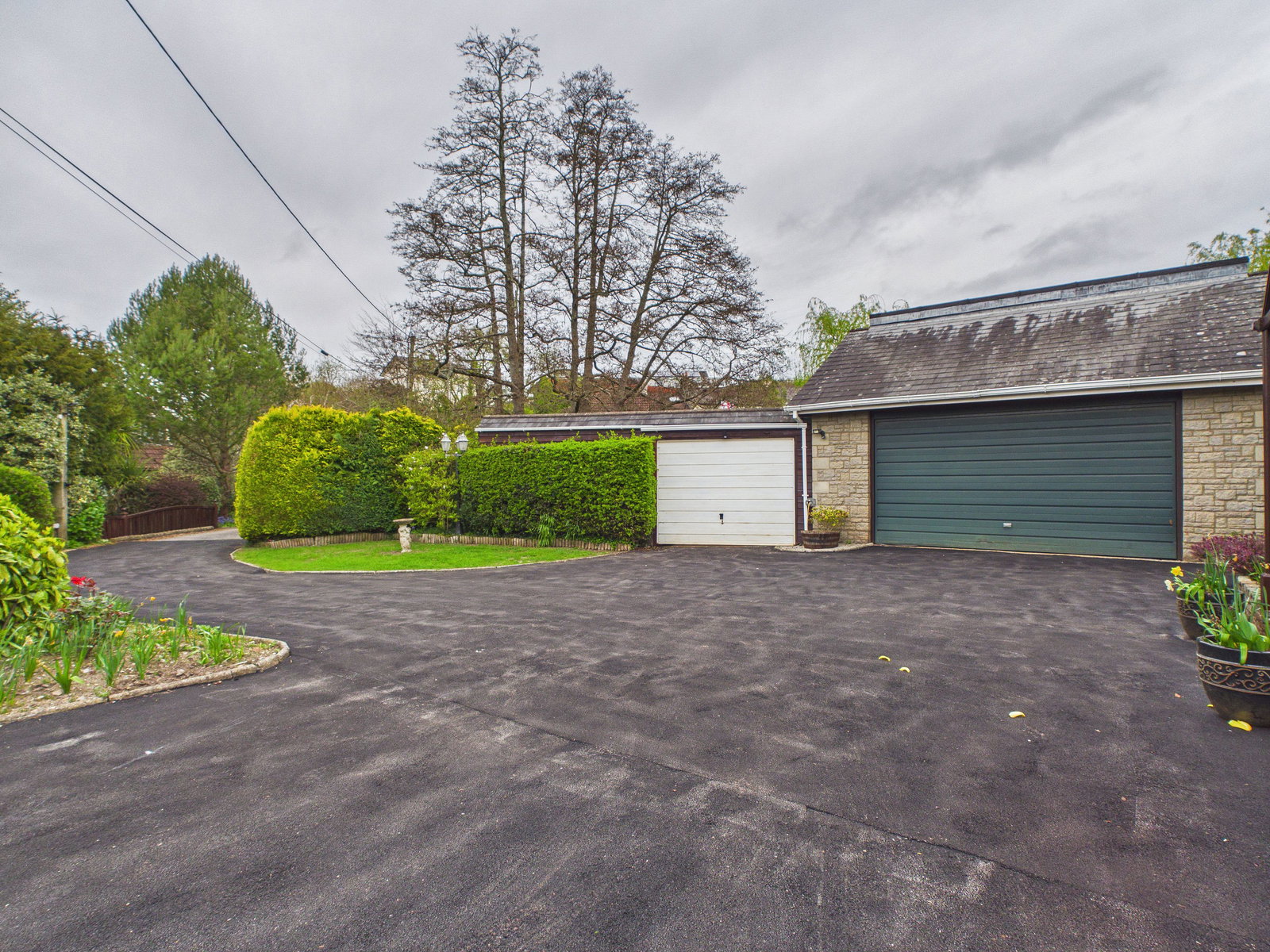 Outside to the front there is a long, private driveway from the stream providing significant parking, with lawned area with established borders leading to the two double garages and firs floor stay. The rear garden offers privacy, enjoying a sunny aspect and is beautifully landscaped, being predominantly level and of a generous size comprising a large, paved patio perfect for enjoying the sun and alfresco dining, level lawns with very well stocked flower and shrub borders and raised stone flower borders, pond with water feature, greenhouse, heated swimming pool with paved terrace surround, and stone built changing room. Hedging and fencing to boundaries. The garden extends along the side with lawn and well stocked flower and shrub borders, fruit trees, further paved area and small area of astro turf with gate to front. The large double garage has an electric up over door with staircase leading to an office and storage area. Alongside the double garage is an additional garage/extended workshop with metal up and over door.
