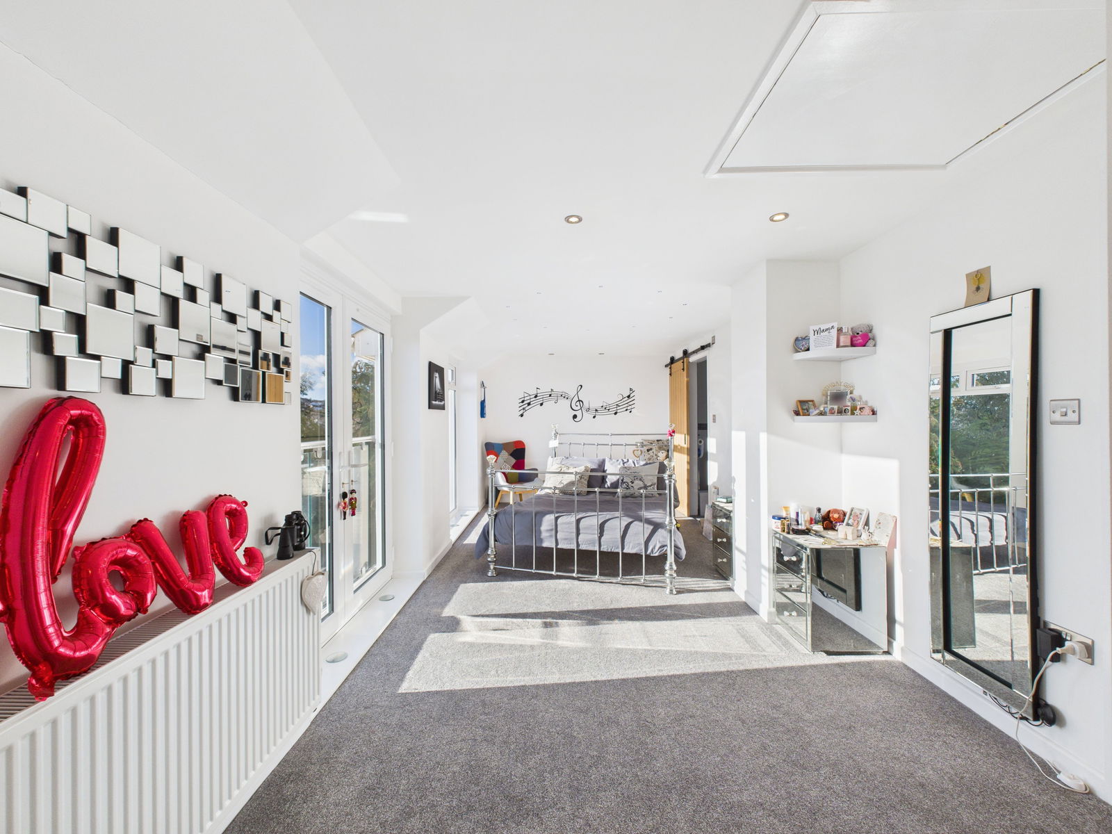 OPEN-PLAN LOUNGE/DINING ROOM Bright and spacious room with large windows to the side and rear, enjoying a sunny aspect throughout the day. Sliding patio doors open onto the balcony.