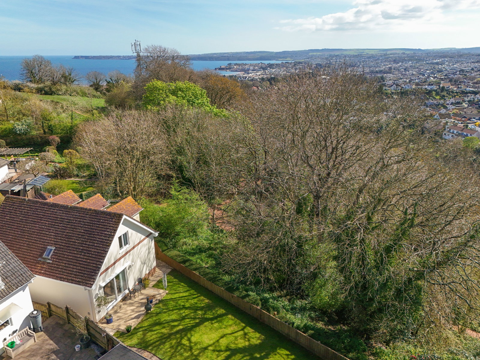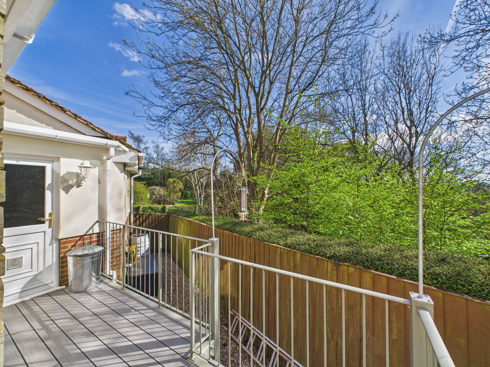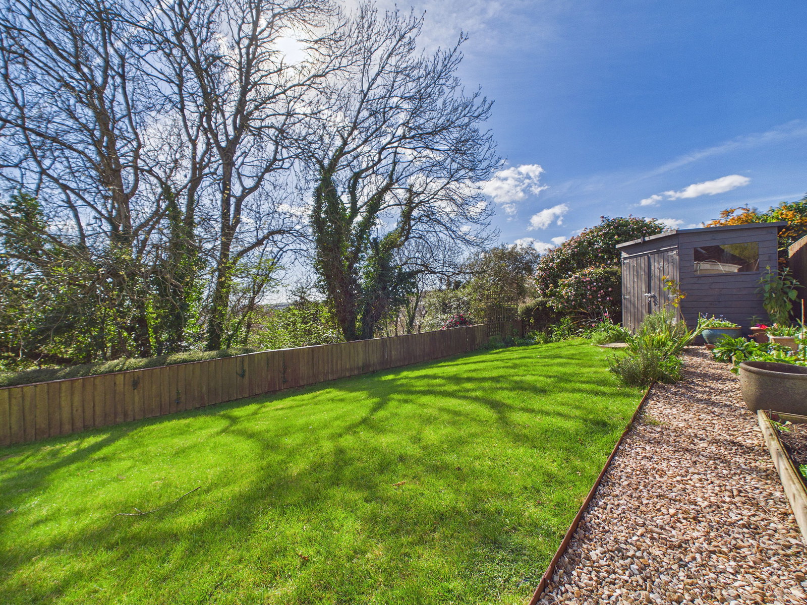 A private and south-facing rear garden, not overlooked and backing onto woodland, offering a peaceful and secluded environment. The garden is mostly laid to lawn with planting beds and a suitable storage shed. A patio area extends from the lounge, creating an ideal outdoor seating space. Additionally, a newly fitted composite decking area accessed from the kitchen provides a private suntrap, benefiting from all-day sun.