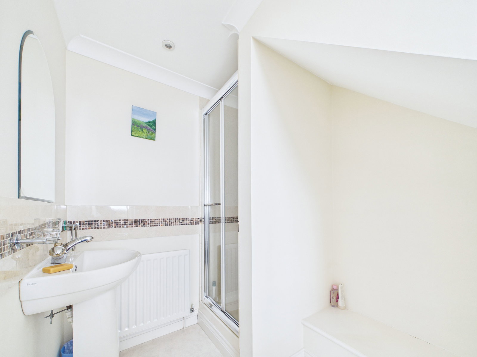 Fitted with a vanity wash basin, WC, radiator and extractor. Also benefits from built-in cupboard space, ideal for coats and shoes.