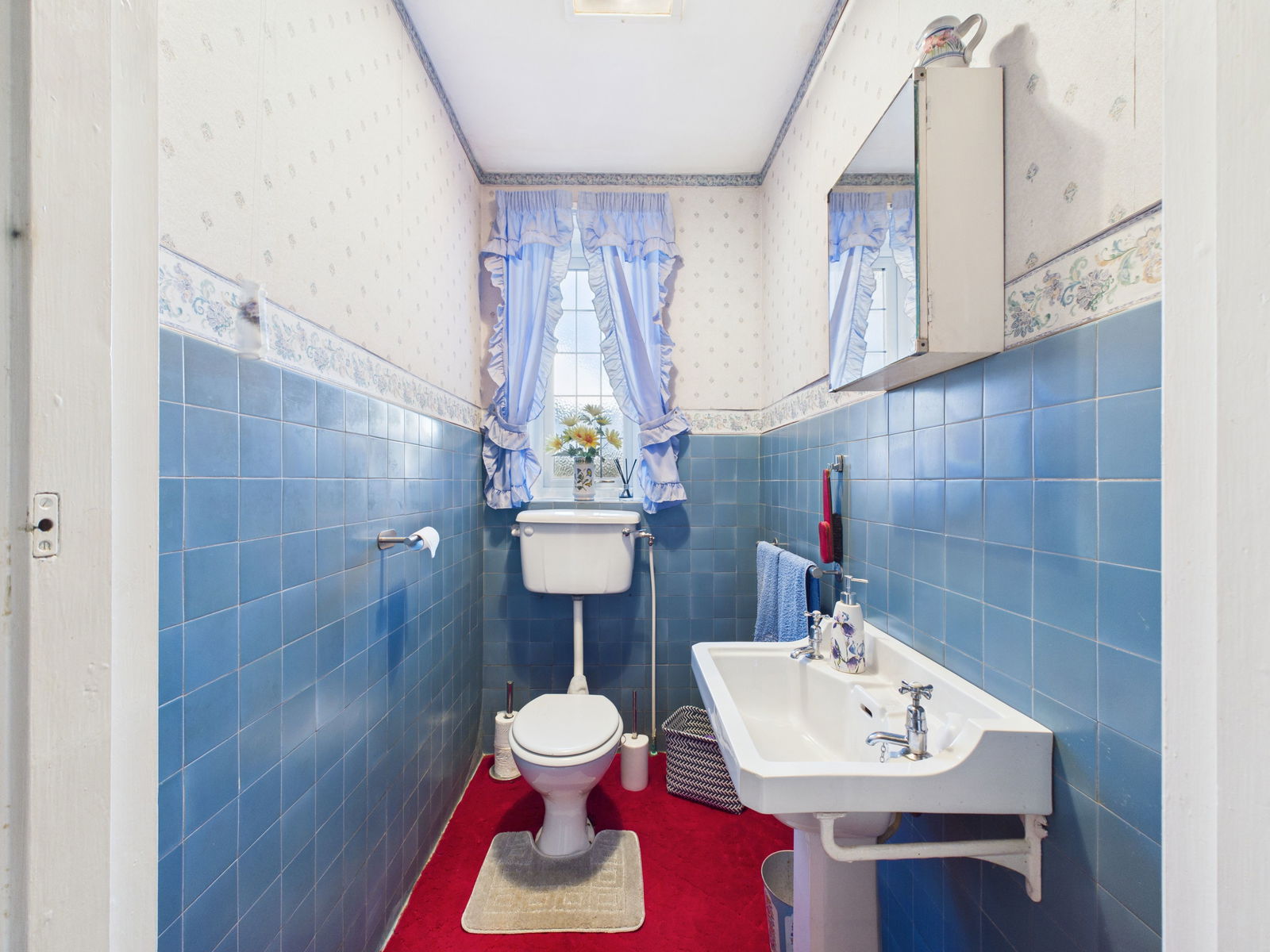 CLOAKROOM Low level WC, pedestal wash hand basin and uPVC double glazing.