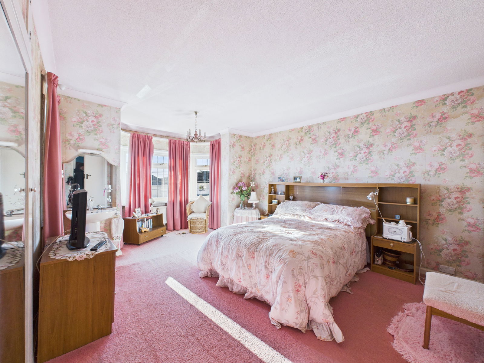 MASTER BEDROOM Bay window taking in truly delightful sea views across the bay. uPVC double glazing, central heating radiator, pedestal wash basin and built in wardrobes.