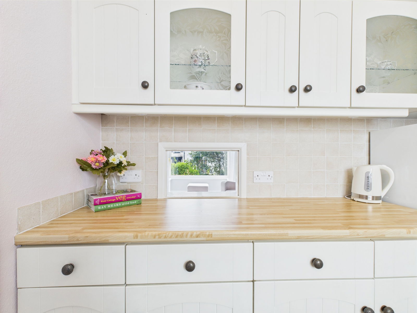 KITCHEN AREA Fitted kitchen comprising a range of base and wall units with roll edge worksurfaces over, inset single sink and drainer with mixer tap over, tiled surround, matching eye level cabinets, upright fridge freezer, space for electric cooker, space and plumbing for washing machine. uPVC double glazing.