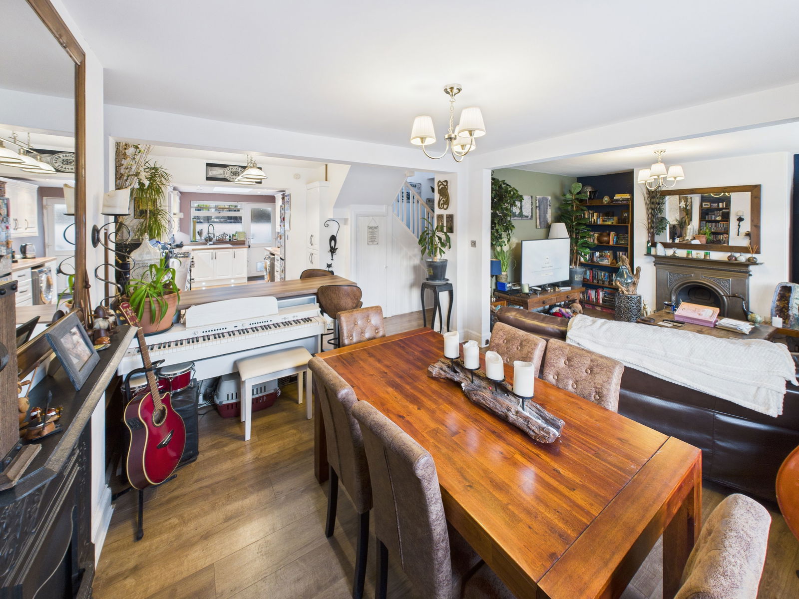 LOUNGE / DINING ROOM A bright and inviting space featuring a UPVC double glazed bay window to the front aspect and a further uPVC double glazed window, attractive cast iron gas fireplace and alcoves ideal for storage, radiator and ceiling light. The lounge/dining area also opens into the kitchen making this a perfect setting for modern day living and entertaining. Space for ample furniture and two gas central heated radiators.