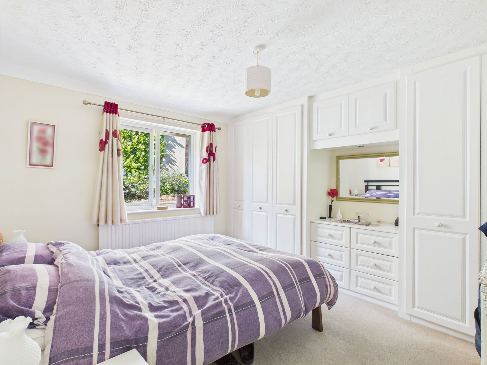 BEDROOM 2 A large double bedroom with built in wardrobes, a radiator and uPVC window.