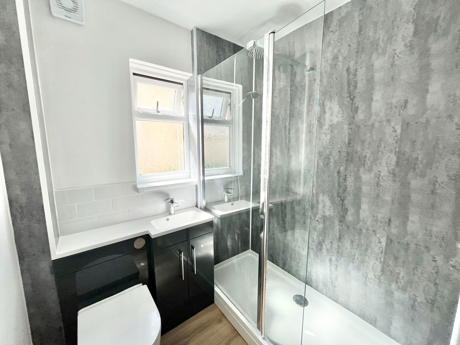 SHOWER ROOM Stunning newly fitted luxury shower suite with shower cubicle and glass screens. Vanity basin. Low level w.c. uPVC double glazed window and spot lights.
