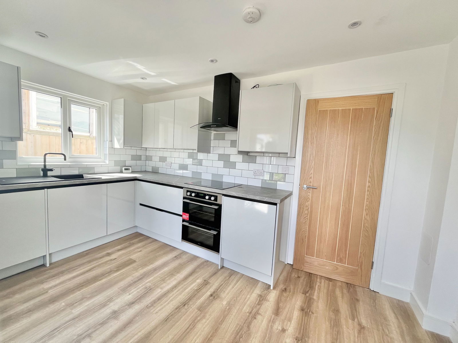 KITCHEN/BREAKFAST ROOM - 4.3m x 2.4m (14'1" x 7'10") Range of newly fitted high gloss units comprising single drainer sink unit with cupboards below. Range of matching wall and base units with double oven and grill, hob with extractor and built in dishwasher. uPVC double glazed window and door. Central heating radiator. Spot lights. Door to outside utility area.