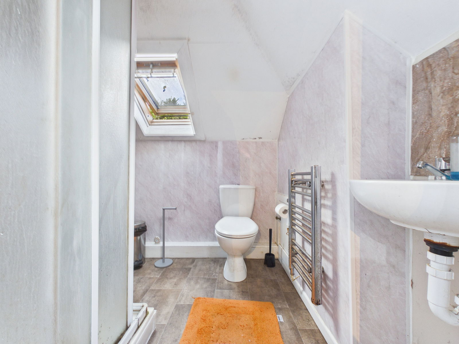 EN-SUITE Fitted with a three piece suite comprising a low level WC, wall hung wash hand basin and corner shower cubicle. Finished with tiled walls, a Velux window and a chrome heated towel rail.