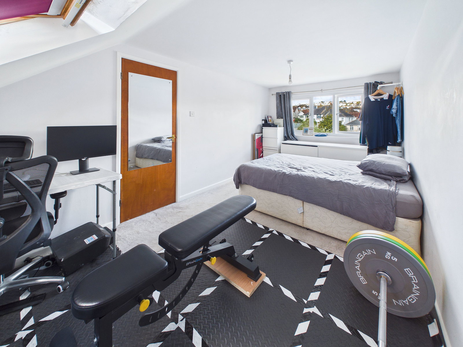 BEDROOM ONE An exceptionally spacious master bedroom offering a peaceful retreat. Features include a uPVC double glazed window overlooking the rear garden, a Velux window to the front aspect, and a gas central heating radiator.