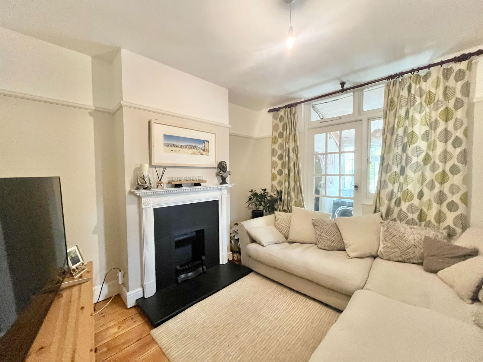 LOUNGE - 4.8m x 3.5m (15'8" x 11'5") A good sized room with fireplace. Stripped wood floor. Radiator. Picture rail. Glazed door to:-