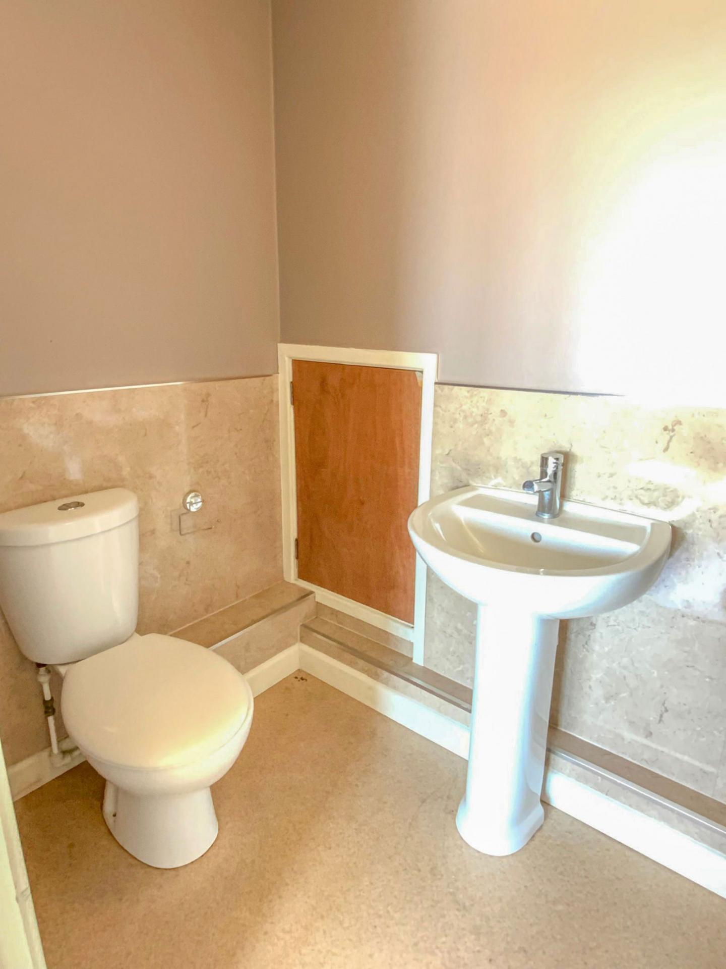ENSUITE SHOWER ROOM A large shower cubicle with acrylic panel and mains powered shower. Wash basin with chrome mixer tap over plus matching close couple WC with dual flush.