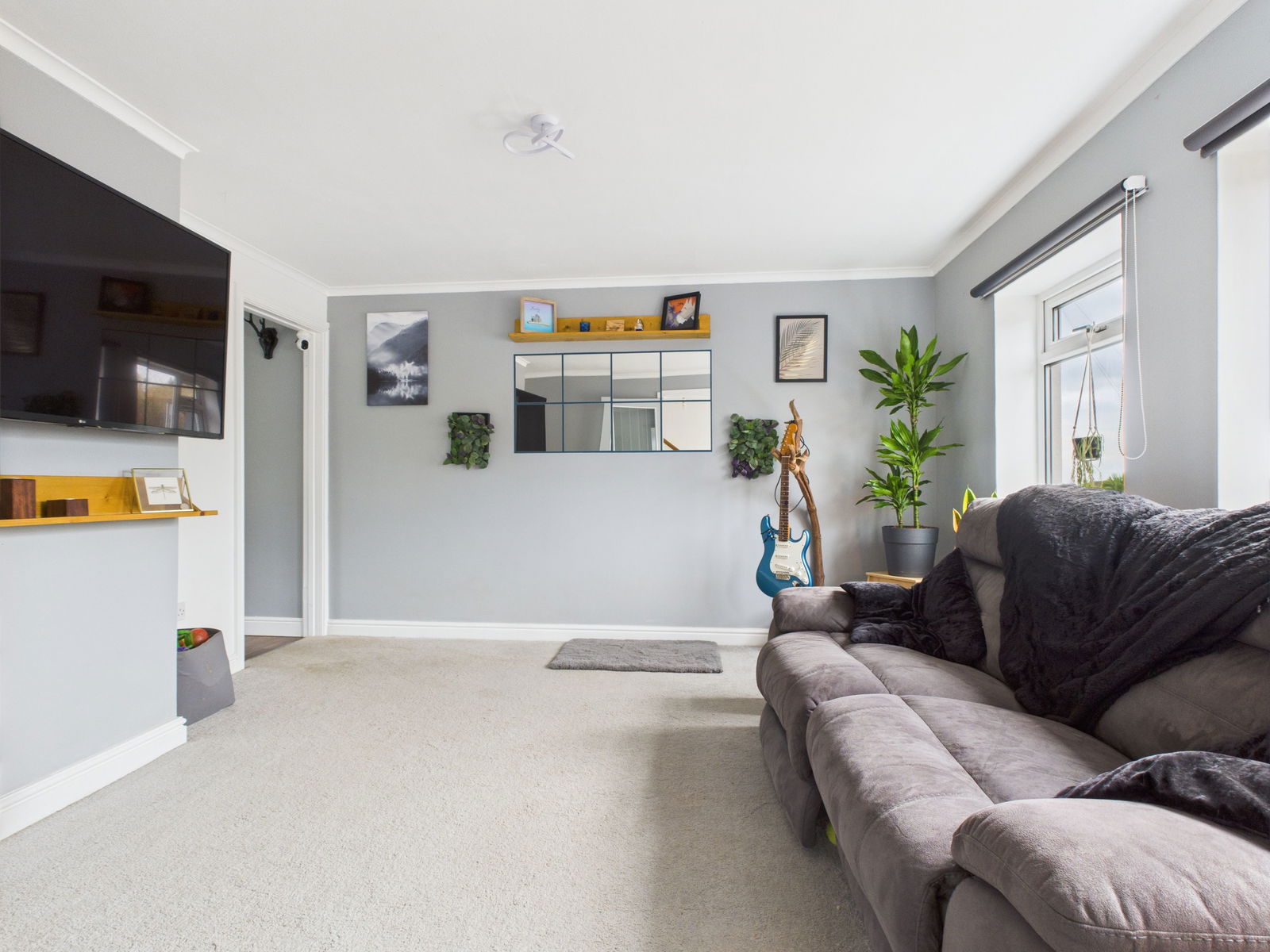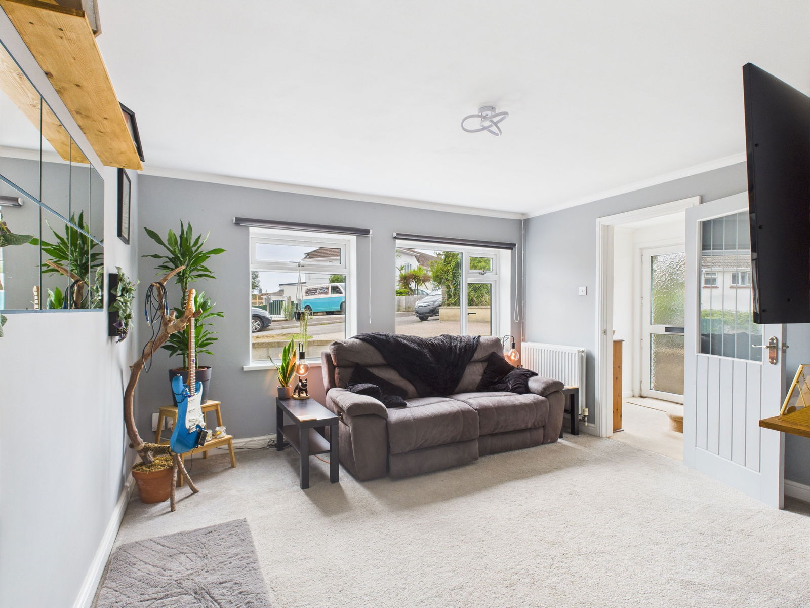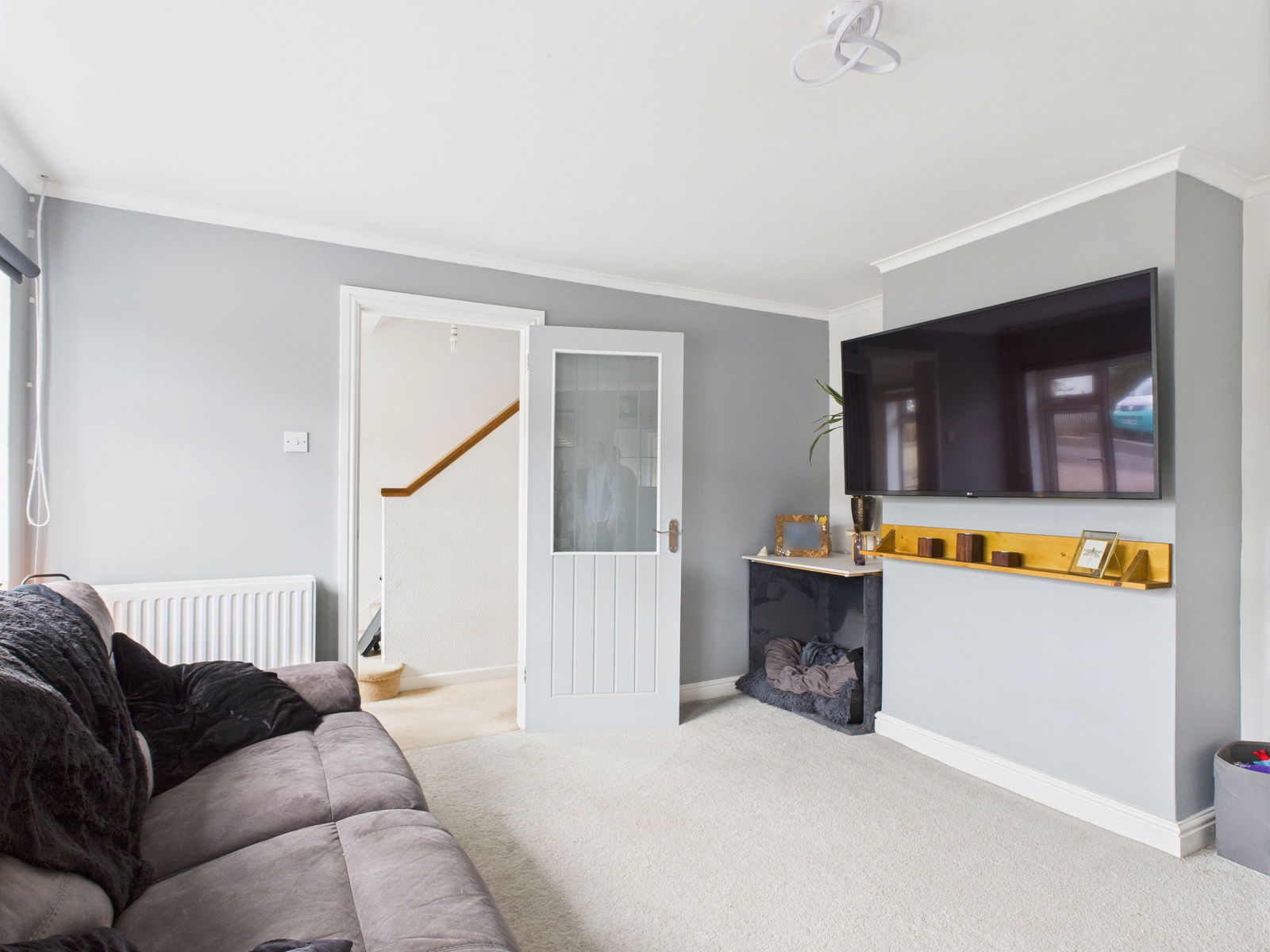 LOUNGE A beautifully bright and generously proportioned living room positioned to the front of the home offering excellent space. Features include two uPVC double glazed windows, TV and internet points and a gas central heating radiator.