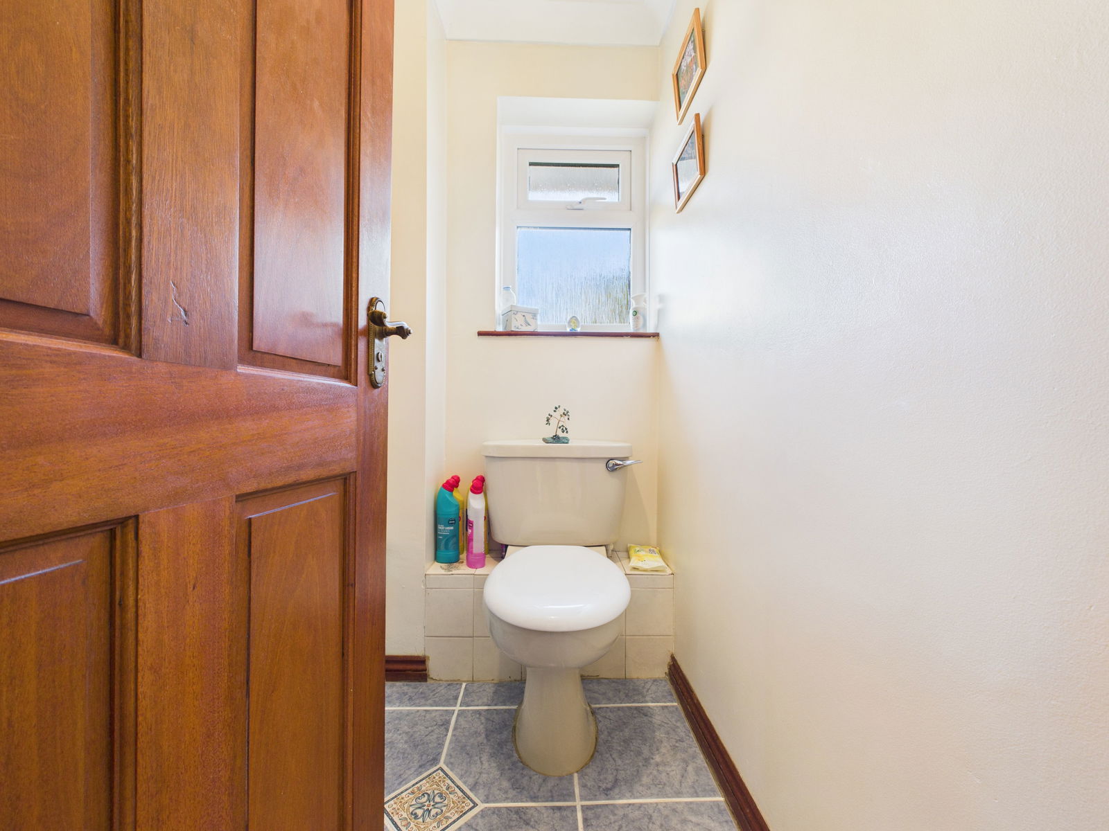 CLOAKROOM A convenient cloakroom with a low level WC, wall mounted wash hand basin and a uPVC obscure double glazed window.