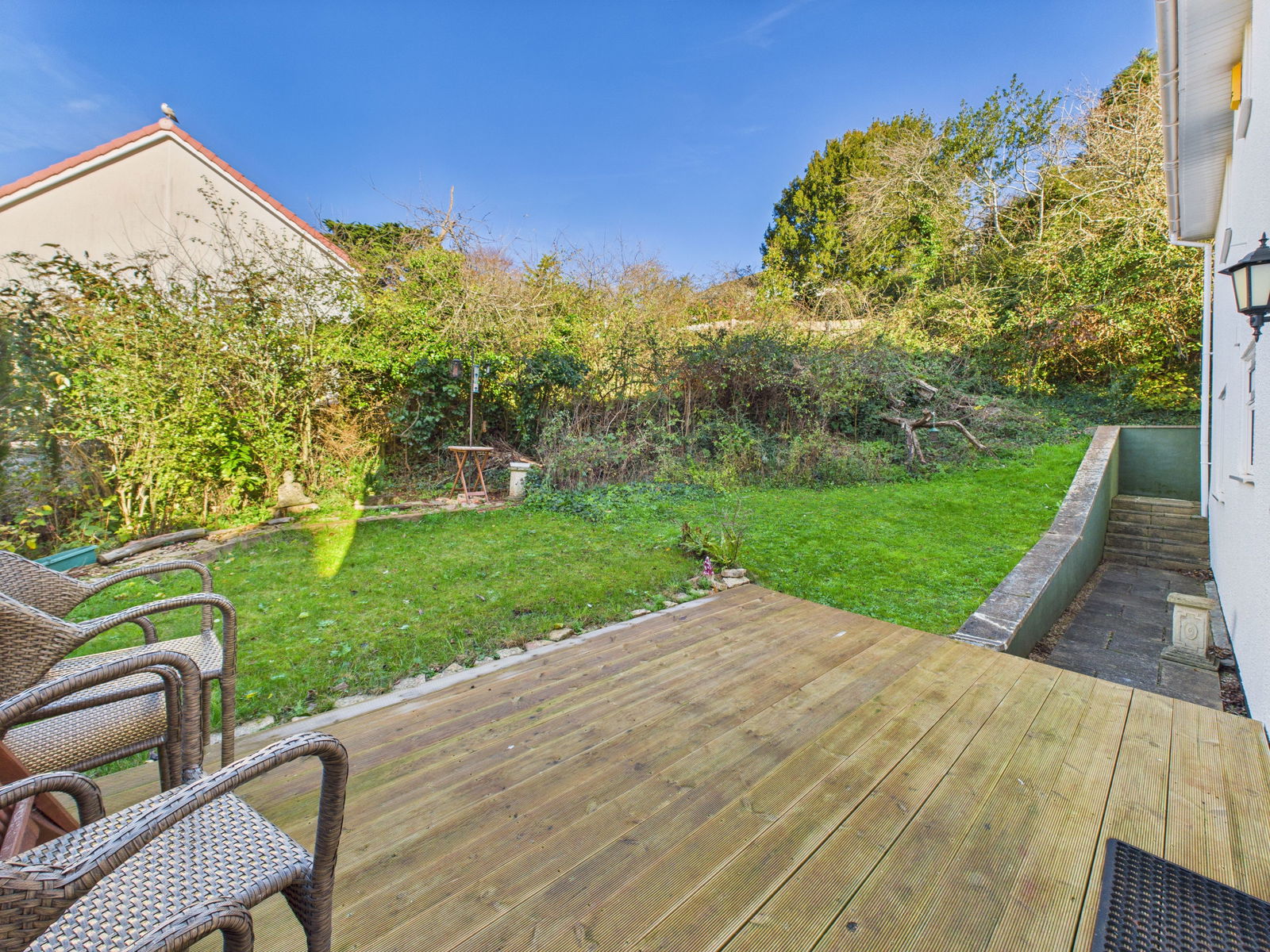GARDENS A wonderfully private, wrap around garden with a woodland feel, perfect for enjoying the sun throughout the day. The space is mainly laid to lawn and features a rich array of mature shrubs, plants and trees. A generous decked area to the rear provides an ideal spot for alfresco dining.