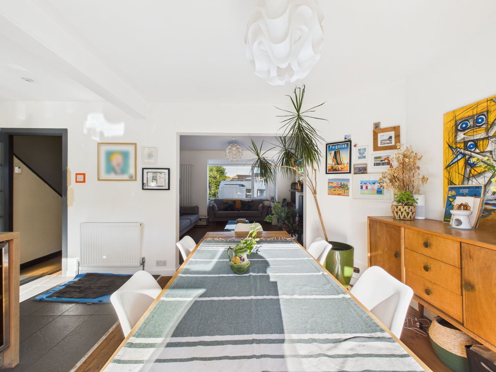 DINING AREA uPVC double glazed French doors. Central heating radiator and natural wood flooring.