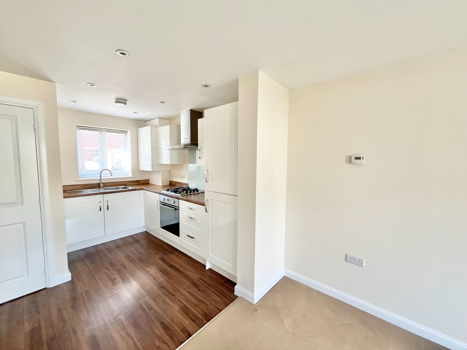 KITCHEN 11' x 10' Smooth set ceiling. Inset ceiling spot lights. Double glazed window to the front aspect. Range of contemporary wall and base units with roll edge work surfaces over. Inset four ring hob with hood over and built in oven and grill. Inset single bowl sink drainer unit with mixer tap over. Integrated fridge/freezer and washing machine. Wood effect flooring.