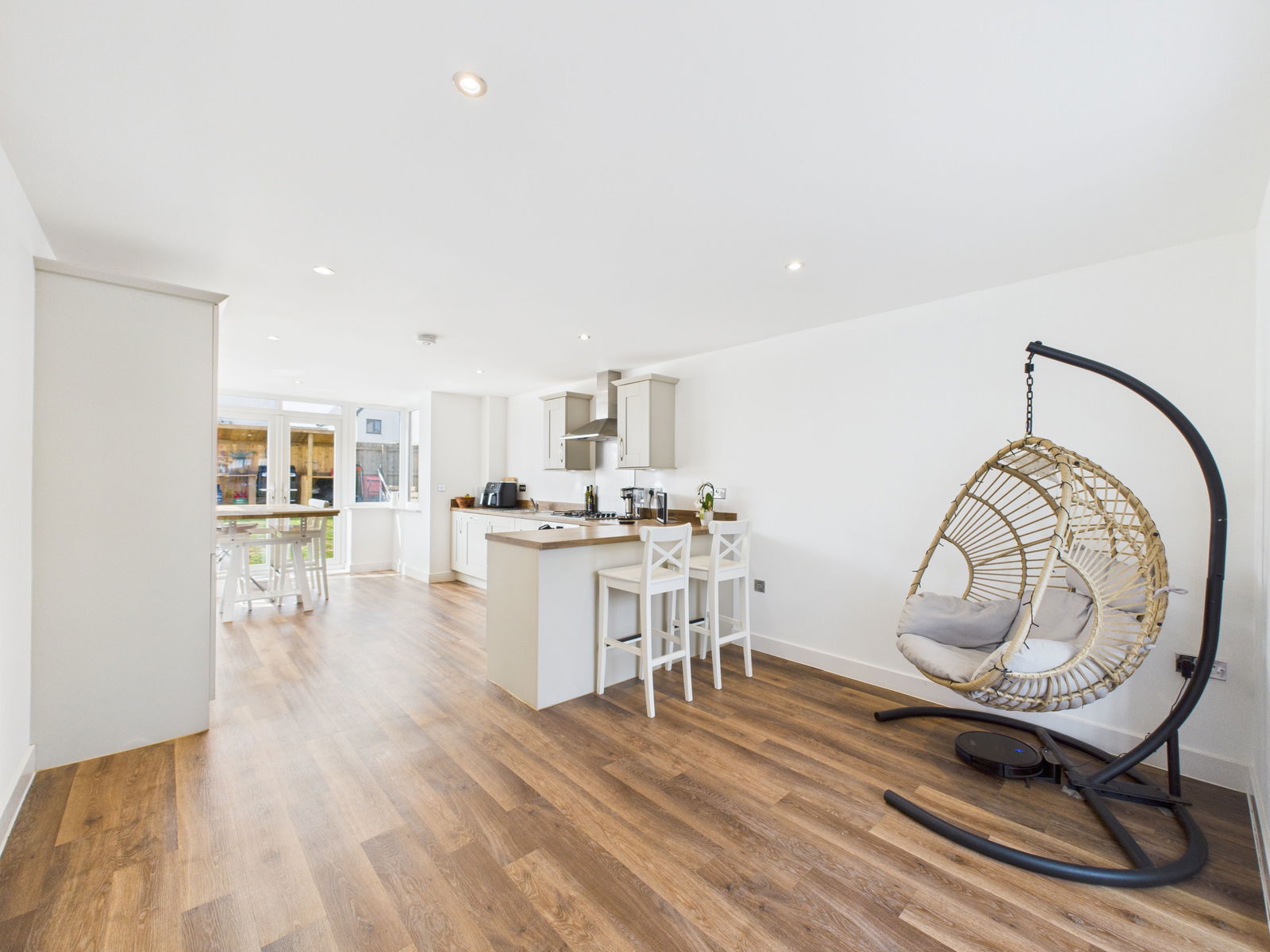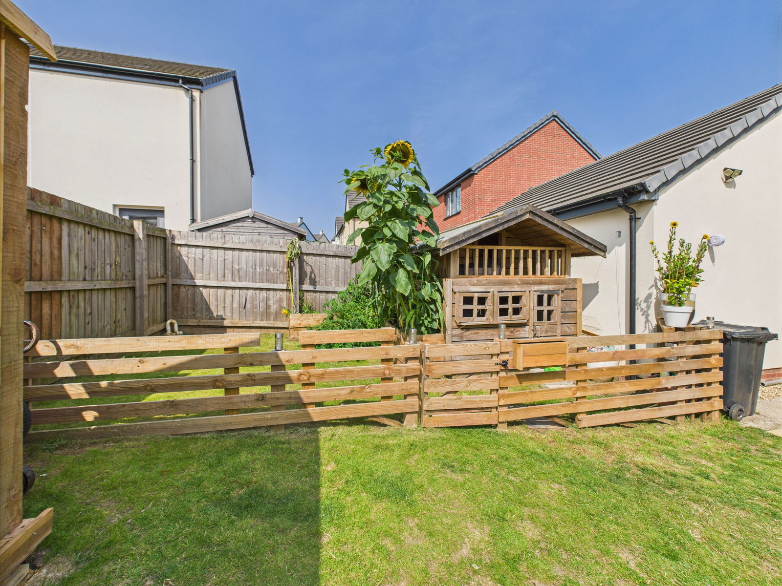OUTSIDE The south facing rear garden has been thoughtfully landscaped for low maintenance, offering a suntrap patio perfect for alfresco dining and entertaining. Beyond lies a generous lawn with a charming picket fence creating a separate area ideal for a children’s play space or small allotment.