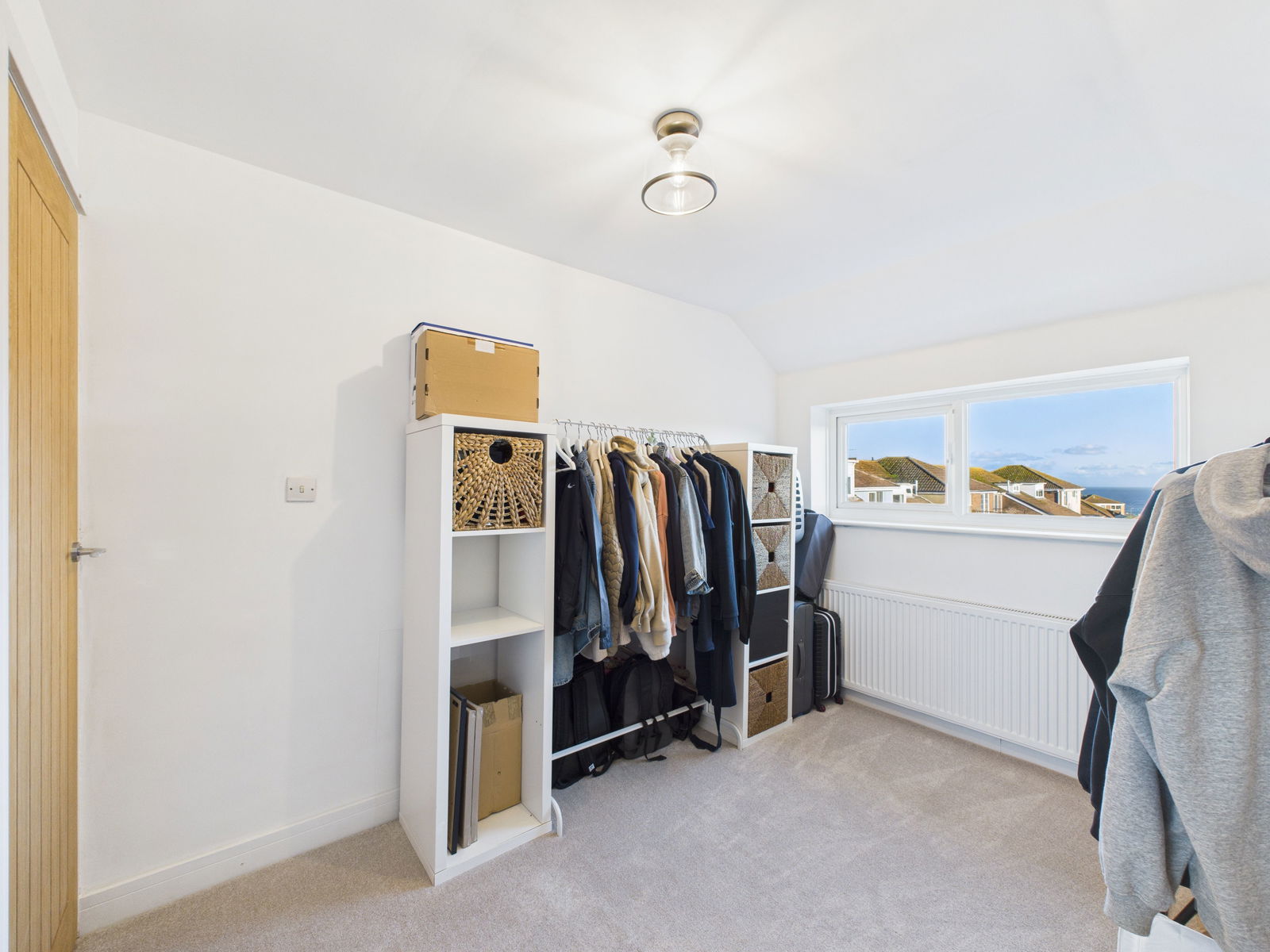 BEDROOM THREE A third well proportioned double bedroom positioned at the front of the property, enjoying attractive sea views, a uPVC double glazed window and a gas central heating radiator.