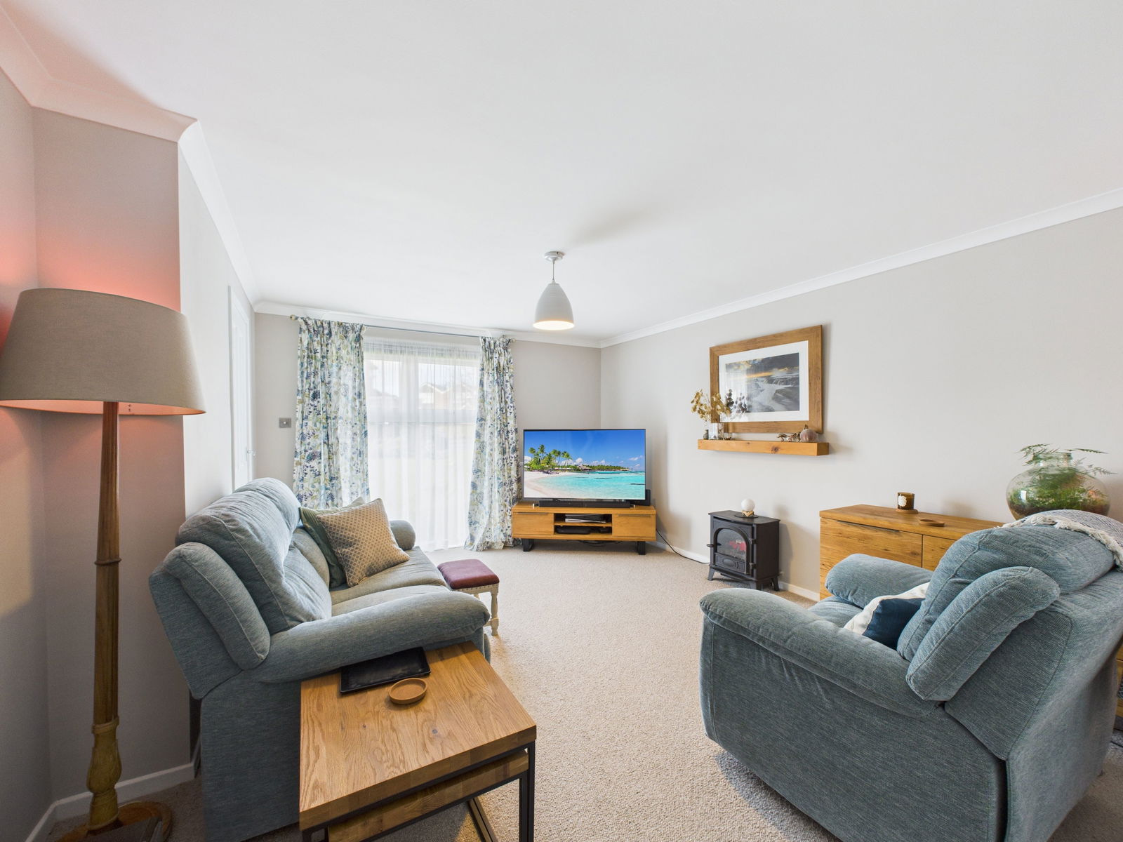 LIVING ROOM A wonderfully spacious and light filled living room positioned to the front of the property. This inviting space offers ample room for furnishings, TV and internet points, an under stairs storage cupboard, impressive floor to ceiling uPVC double glazed window and a gas central heated radiator.