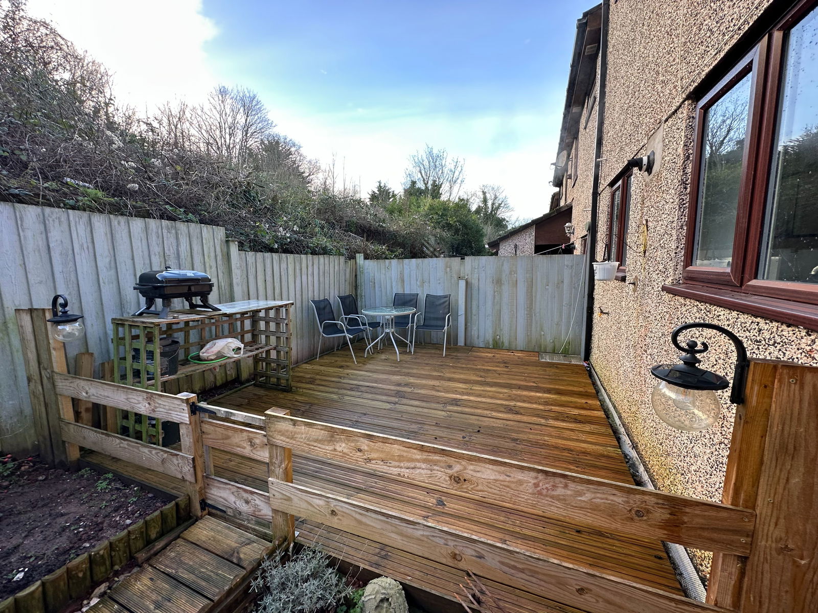 OUTSIDE To the front is a gravelled garden area. Steps leading up to the front door. The rear garden is enclosed and is art patio and part decking making an idea easily maintained garden perfect for BBQ's an entertaining.