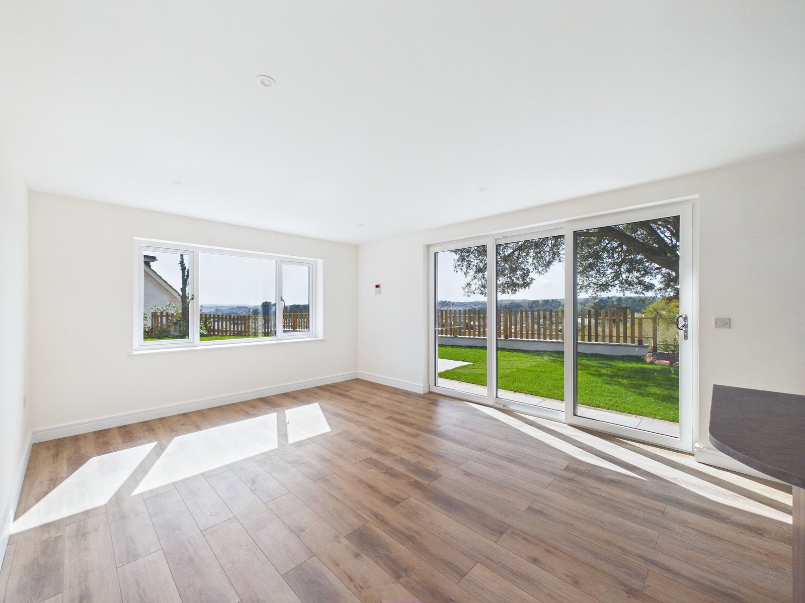 OUTSIDE There is a very large sunny l-shaped wrap around garden with two patio seating areas. Large level lawns, open sea views over Torquay. The development stands within its own landscaped grounds and benefits from secure gated access with extensive CCTV coverage, including advanced thermal entry cameras monitoring the parking bays providing residents with an enhanced level of safety and peace of mind.