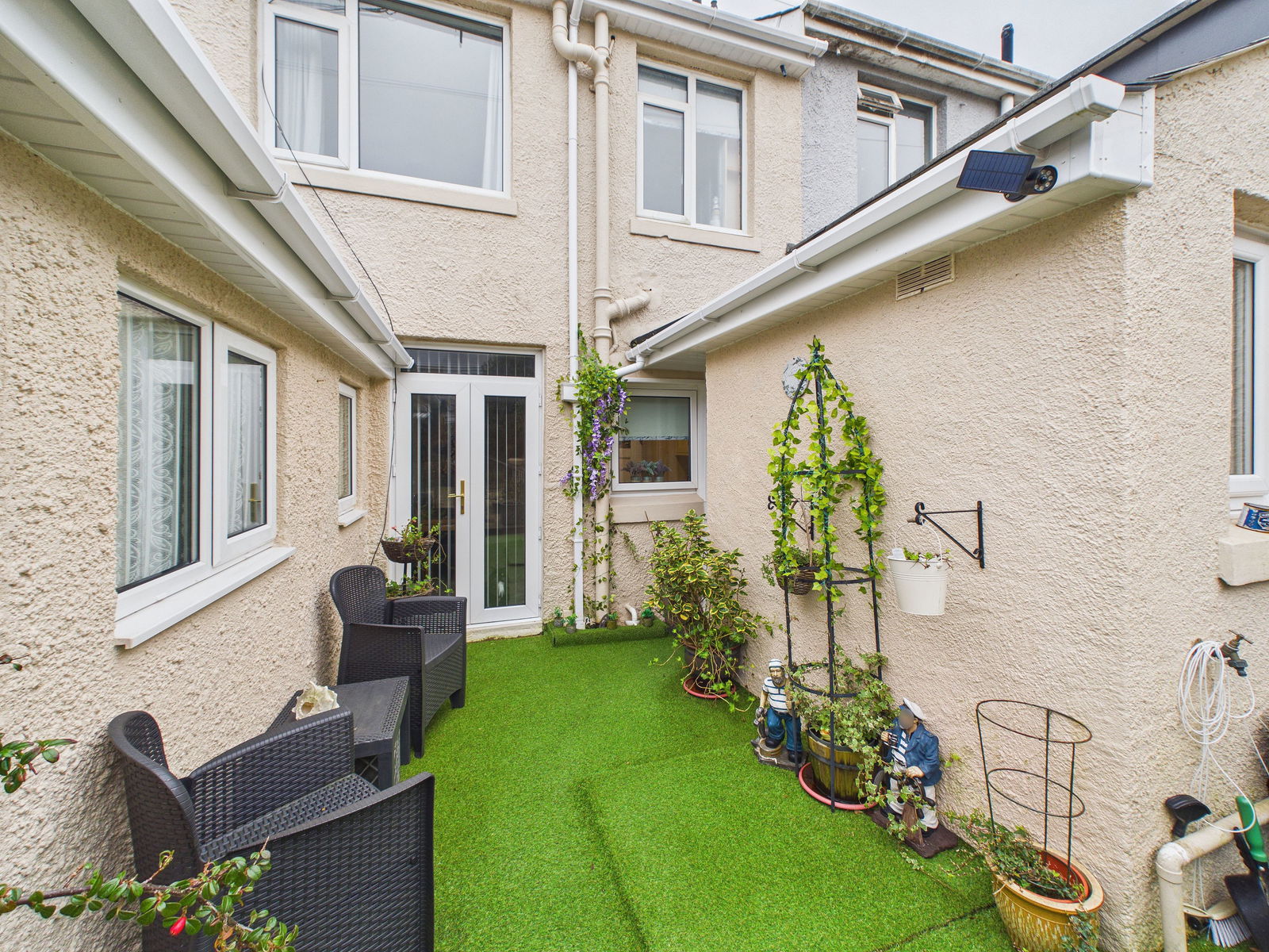OUTSIDE To the front of the property is a level, low maintenance garden laid mostly to paving with a pathway to the front door. There are borders planted with mature shrubbery and Torbay palms. At the rear of the property is a well-cared for level garden having a patio area with ample space for potted plants. This leads to a sunny paved patio with ample space for sun loungers and a good size outdoor dining table perhaps. The left side of the rear garden is a beautiful feature style garden with bespoke painted railings opening into a paved seated area, surrounded with pebbles leading onto immaculate borders planted with flowers and mature shrubbery. At the rear of the garden is a gorgeous summerhouse. There is also a wrought iron gate providing rear access. Outdoor tap. The Vendor advises that this property has had a new roof, facias, soffits and guttering during 2023.
