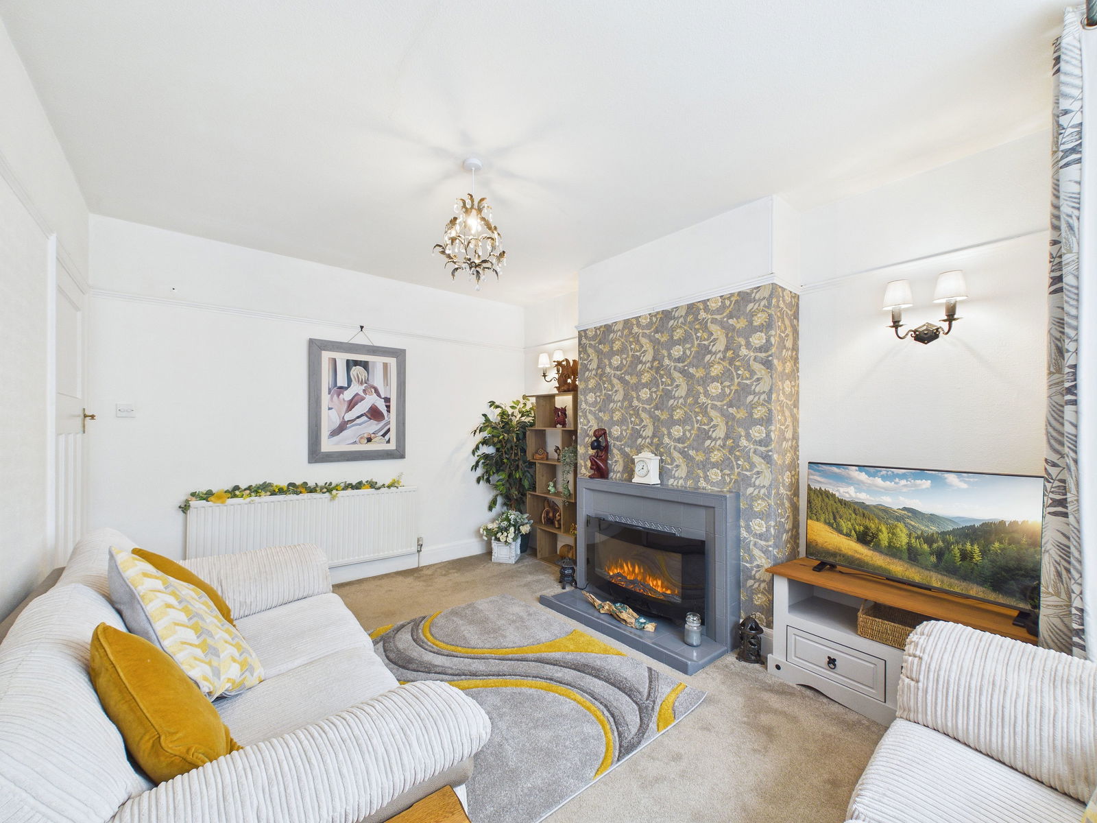 LOUNGE - 4.93m x 3.32m (16'2" x 10'10") A bright and homely lounge with a double glazed bay window to the front aspect. Characterful tiled fireplace with a matching tiled hearth. Picture rails and carpeted flooring. Radiator. Two wall light points. TV point.