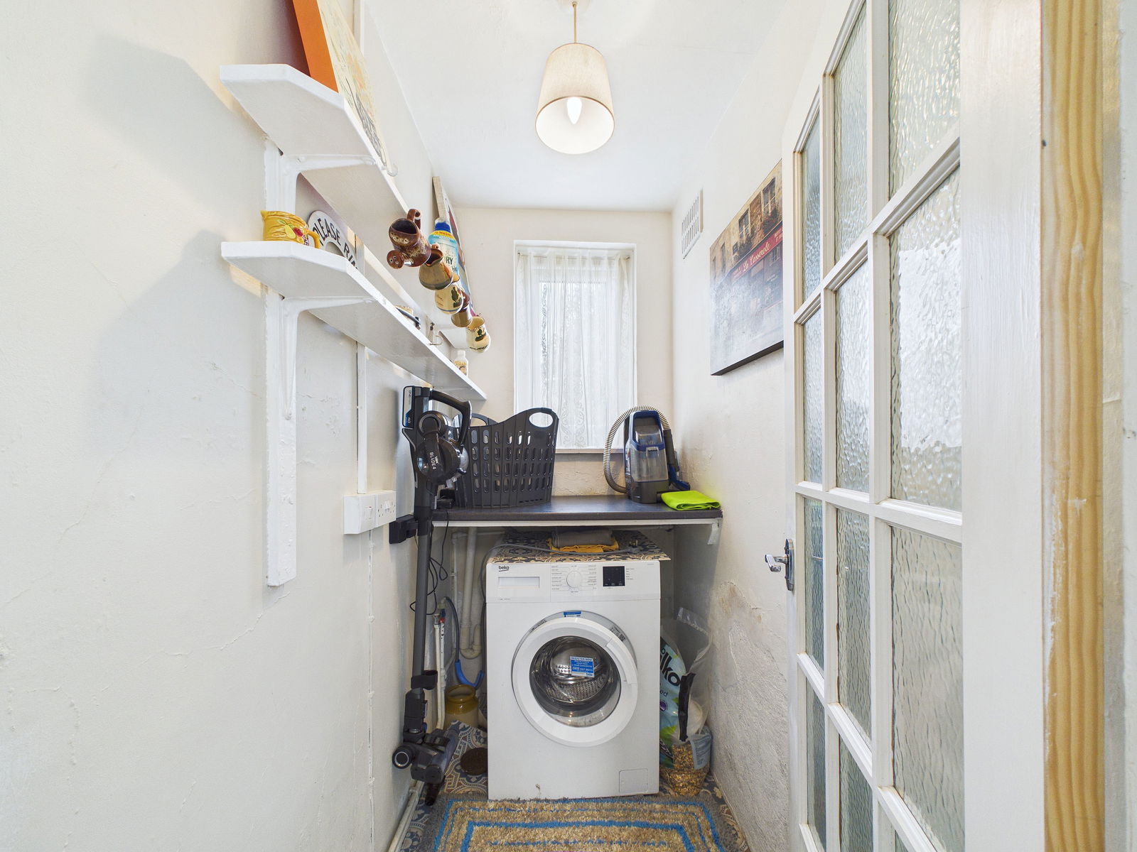 UTILITY - 1.81m x 1.08m (5'11" x 3'6") Space and plumbing for a washing machine. Rolled edge work surface and shelved storage space. Tiled effect flooring matching the kitchen. Double glazed window to the rear aspect.