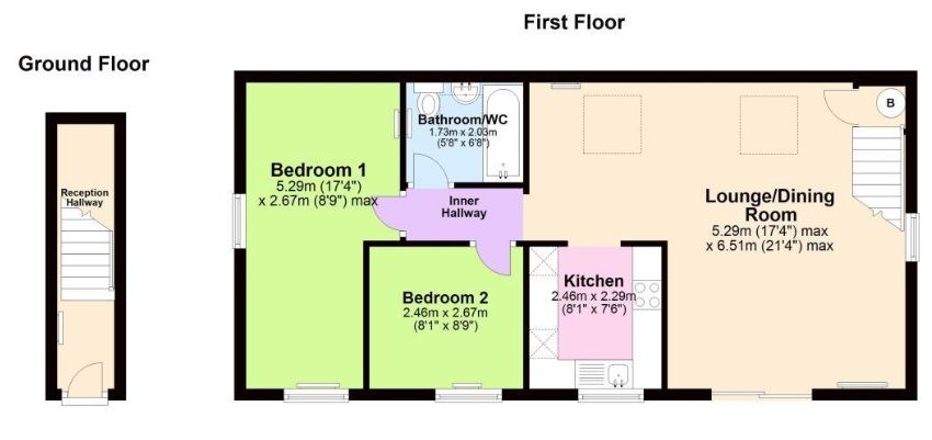 Bedroom two - 2.6m x 2.4m (8'6" x 7'10")