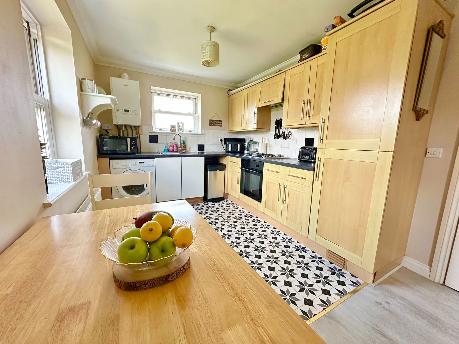LOUNGE/KITCHEN/DINER - 8.2m x 2.8m (26'10" x 9'2") max A welcoming room with the lounge area comfortably accommodating a 3 piece suite. There are double glazed windows  that afford an open outlook across the locality taking in many of the beautiful period villas that make up the area along with St Mathews Church. TV point. Two wall light points. Radiator. The kitchen area is well appointed with a  range of matching wall and base units with work surface over. Fitted gas hob with oven/grill below and cooker hood over. Plumbing for washing machine. Space for fridge/freezer. Ideal gas boiler. Double aspect double glazed windows one of which has an open outlook to the locality the other having expansive views across Torquay with Babbacombe and St Marychurch to the horizon. The is space enough for a 4 seater table and chairs.