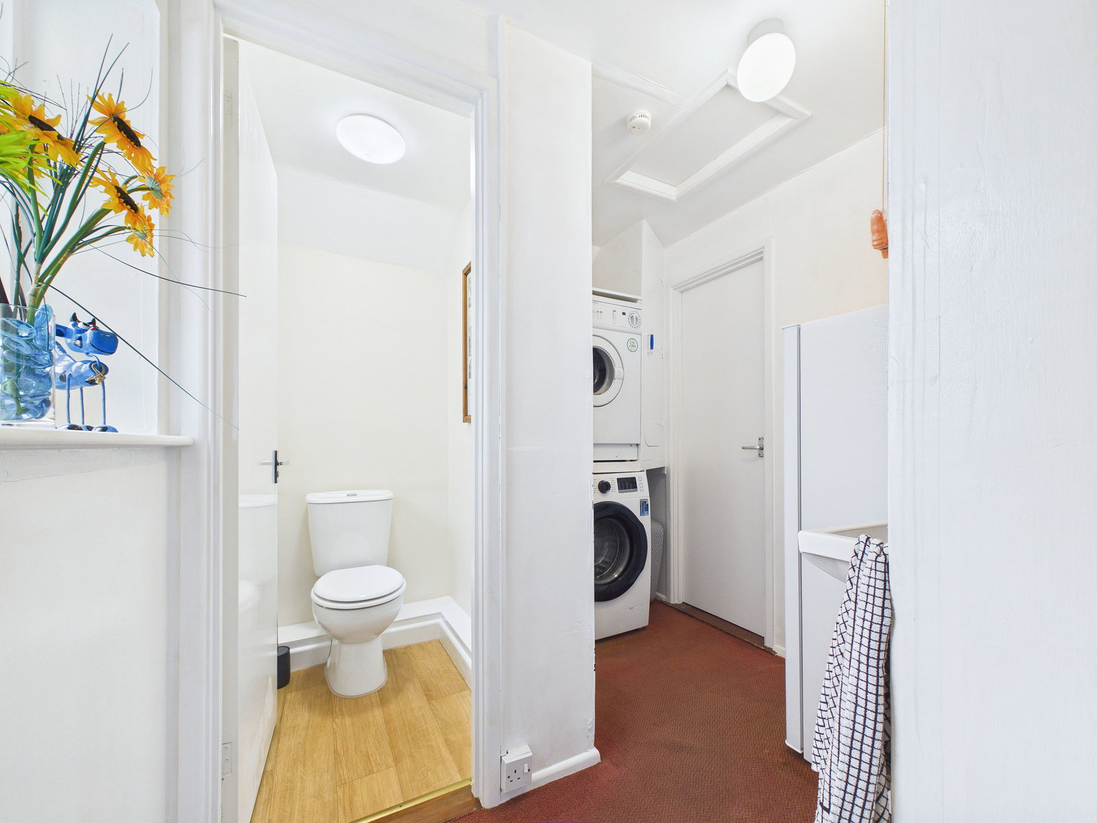 UTILITY 7' 3" x 7' 2" (2.21m x 2.18m) to L-Shape Light point, obscure glazed window to front, wall mounted wash hand basin, space for upright fridge freezer, space and plumbing for washing machine with tumble dryer over, door to ground floor W.C, door to