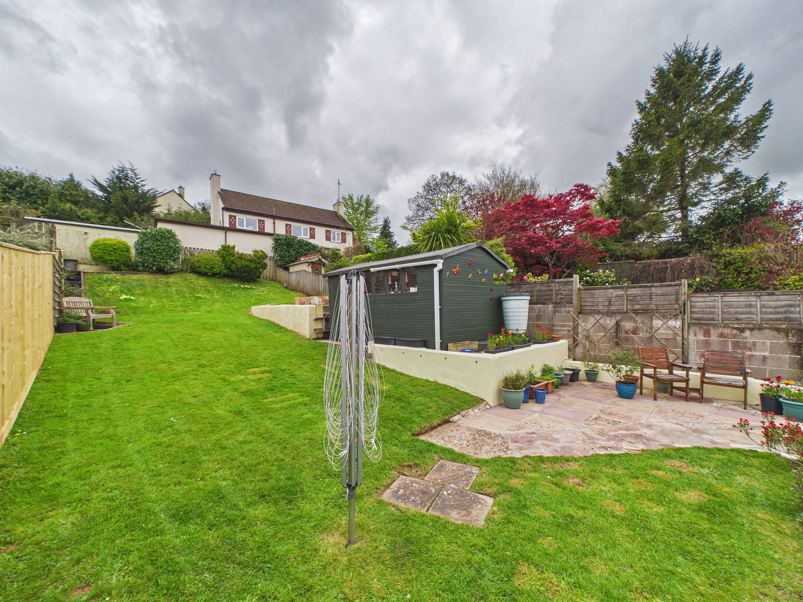 REAR The rear garden is accessed from the kitchen/breakfast room and the dining room onto a paved patio area with outside lighting, outside tap and raised planting border to one side. Steps lead to the remainder of the garden which is mainly laid to lawn and enclosed by timber fence with a raised vegetable plot and composting area. Timber workshop with light and power.