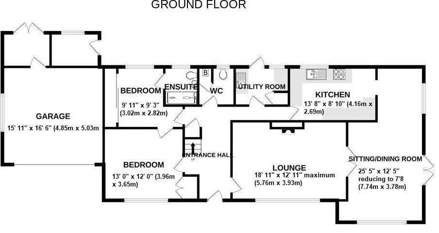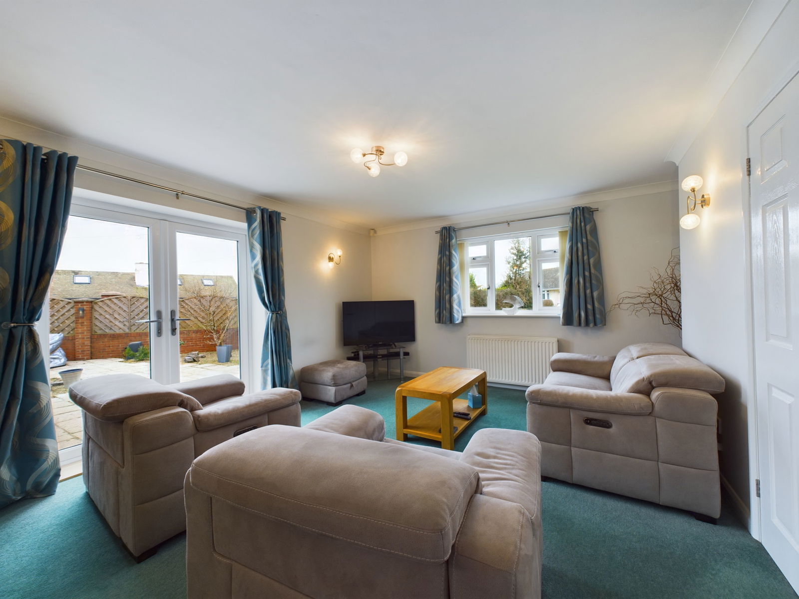DINING ROOM /SNUG - 25' 5'' x 12' 5'' reducing to 7'8 (7.74m x 3.78m) Double aspect with double glazed windows and French doors opening to garden and patio area. Two radiators. Door to:-