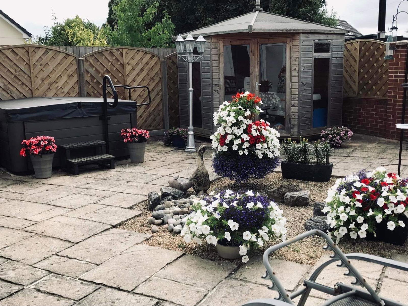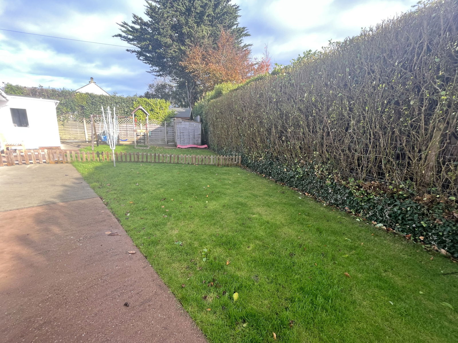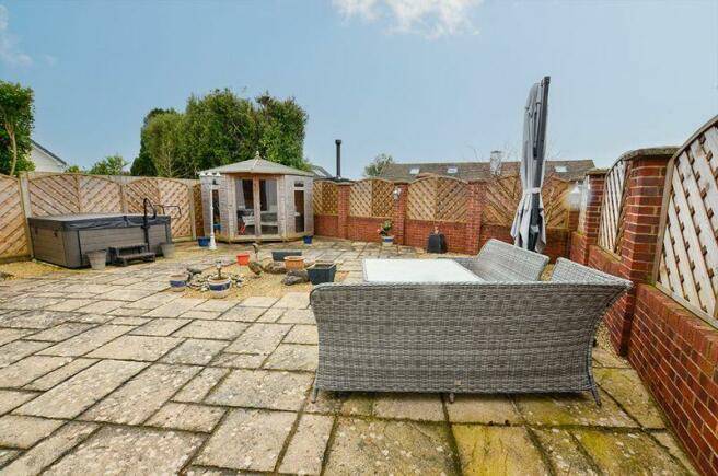 REAR GARDEN Level, rear garden with lawn which is enclosed by fence and hedges. Gate to large enclosed paved area to the side of the bungalow with water feature. Summerhouse. Timber shed.