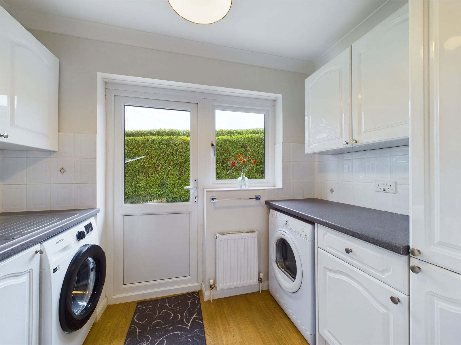 UTILITY ROOM - 8' 10'' x 5' 9'' (2.69m x 1.75m) Fitted with a range of white fronted wall and base cupboards with roll edge worktops and inset stainless steel sink and drainer. Space for white goods and washing machine. Double glazed window and door to rear garden.