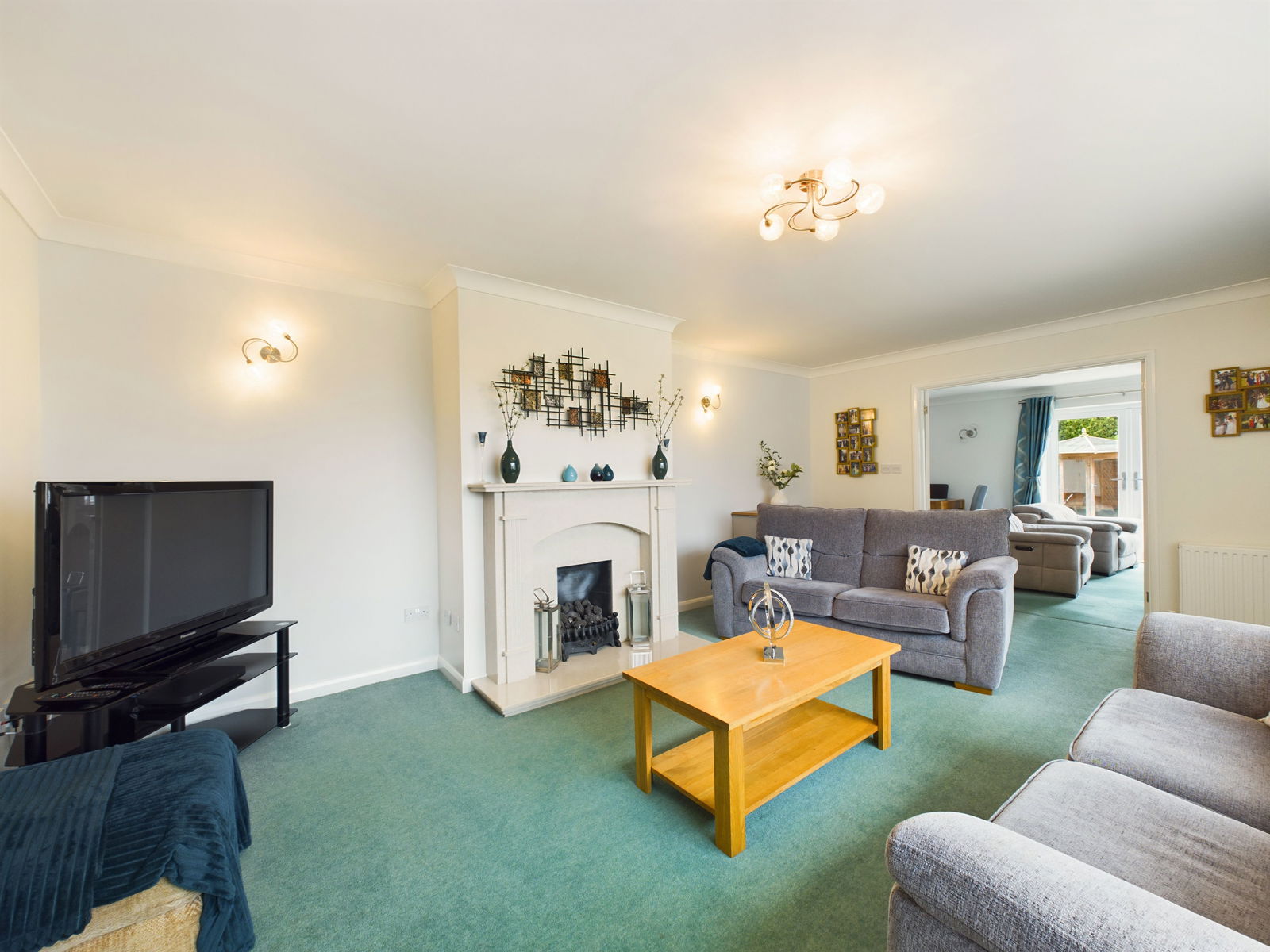 LIVING ROOM - 18' 11'' x 12' 11'' maximum (5.76m x 3.93m) Large double glazed window to front. Marble feature fireplace with inset coal effect gas fire. Two radiators. Double doors to:-