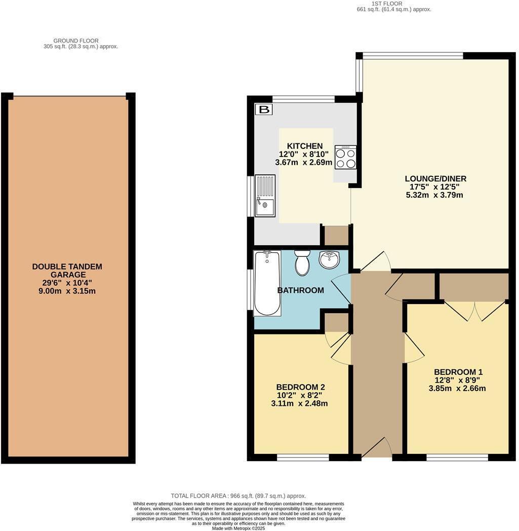 GARAGE A particularly large double length garage with a metal up and over door offering exceptional storage or workshop potential in addition to secure parking.