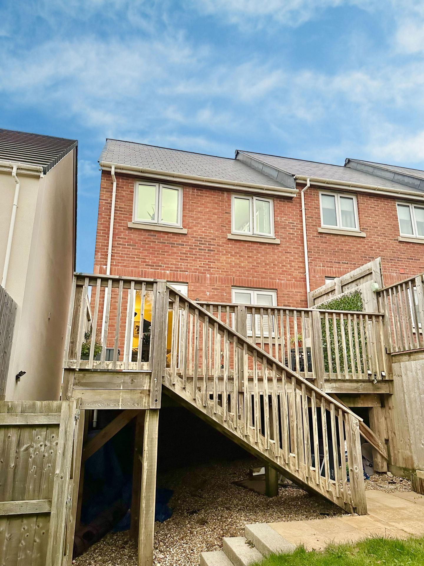 Set out over two levels the first having a sun decked with steps down to the lawn and paved garden being enclosed and private.