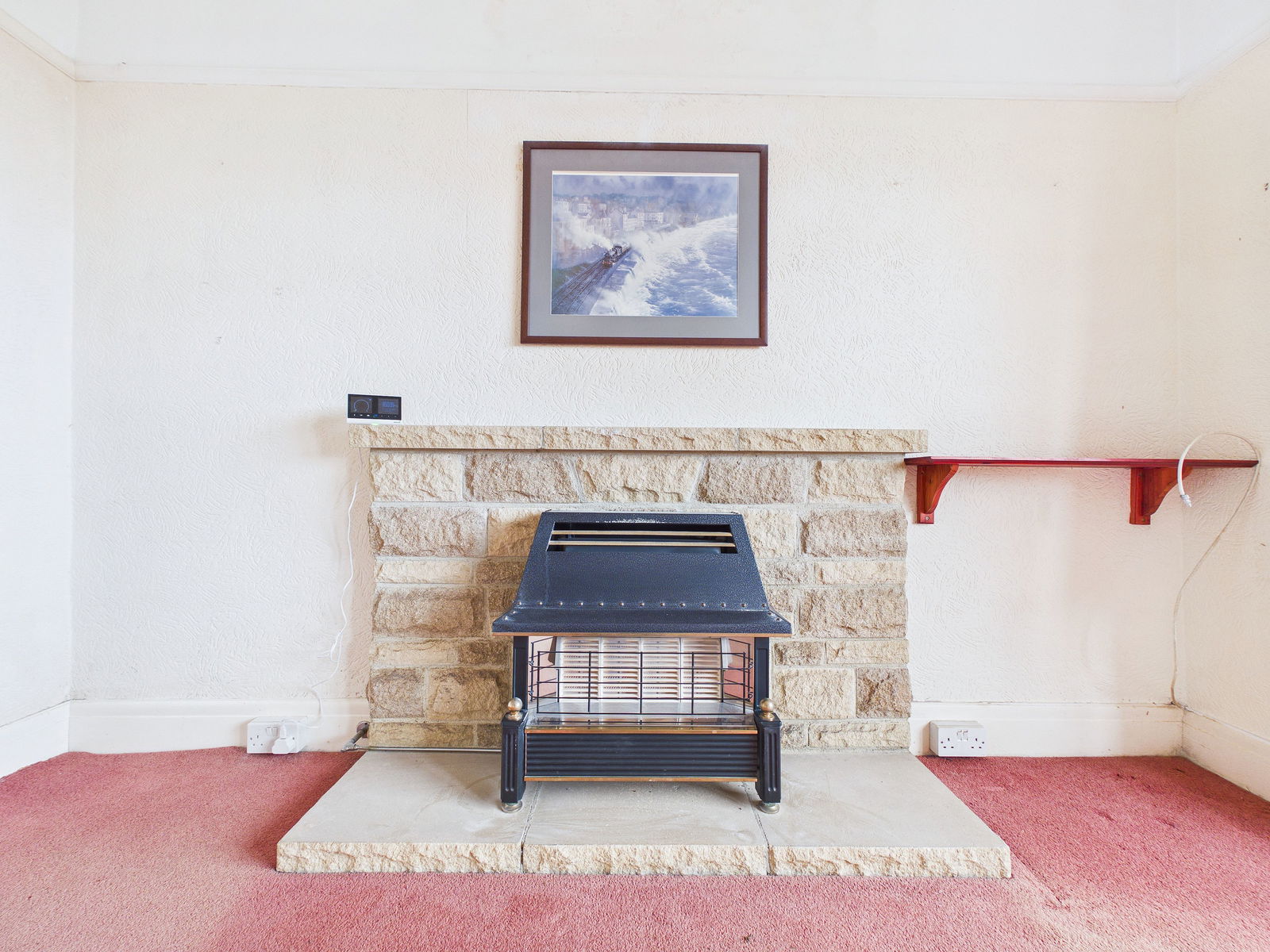 LOUNGE uPVC double glazed bay window. Fireplace surround. Central heating radiator.