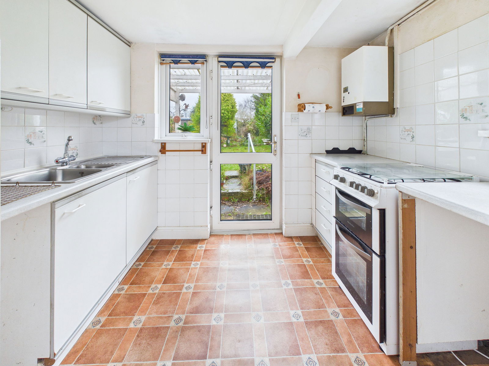 KITCHEN/DINER Range of fitted wall and base units with 1.5 bowl sink. uPVC double glazing and door to rear opening onto dining area. Central heating radiator and uPVC double glazing.