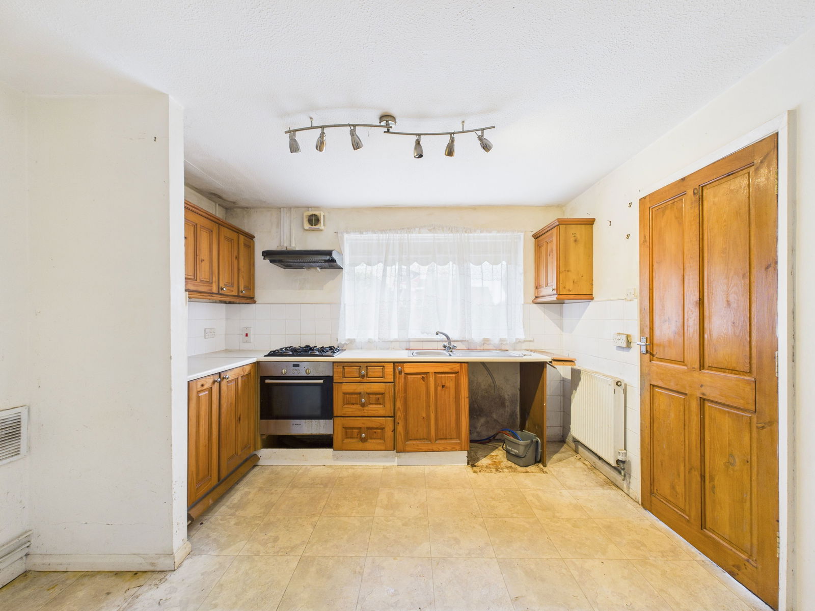 KITCHEN This generously sized kitchen/breakfast room offers a comprehensive range of wall, base and drawer units topped with roll edged work surfaces. Included is a 1 bowl stainless steel sink with drainer, an electric oven with grill, a four ring gas hob with extractor hood above and space with plumbing for both a washing machine and a fridge freezer. There is ample room for a breakfast table, along with a built in cupboard housing the boiler. A uPVC double glazed window and gas central heated radiator.