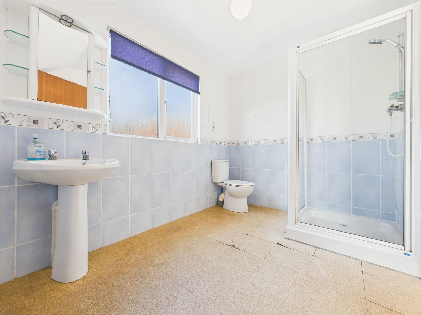 EN-SUITE A spacious private en-suite with walk-in shower, a pedestal wash basin, a low level flush WC, tiled walls, chrome towel rail and a uPVC obscure double glazed window.