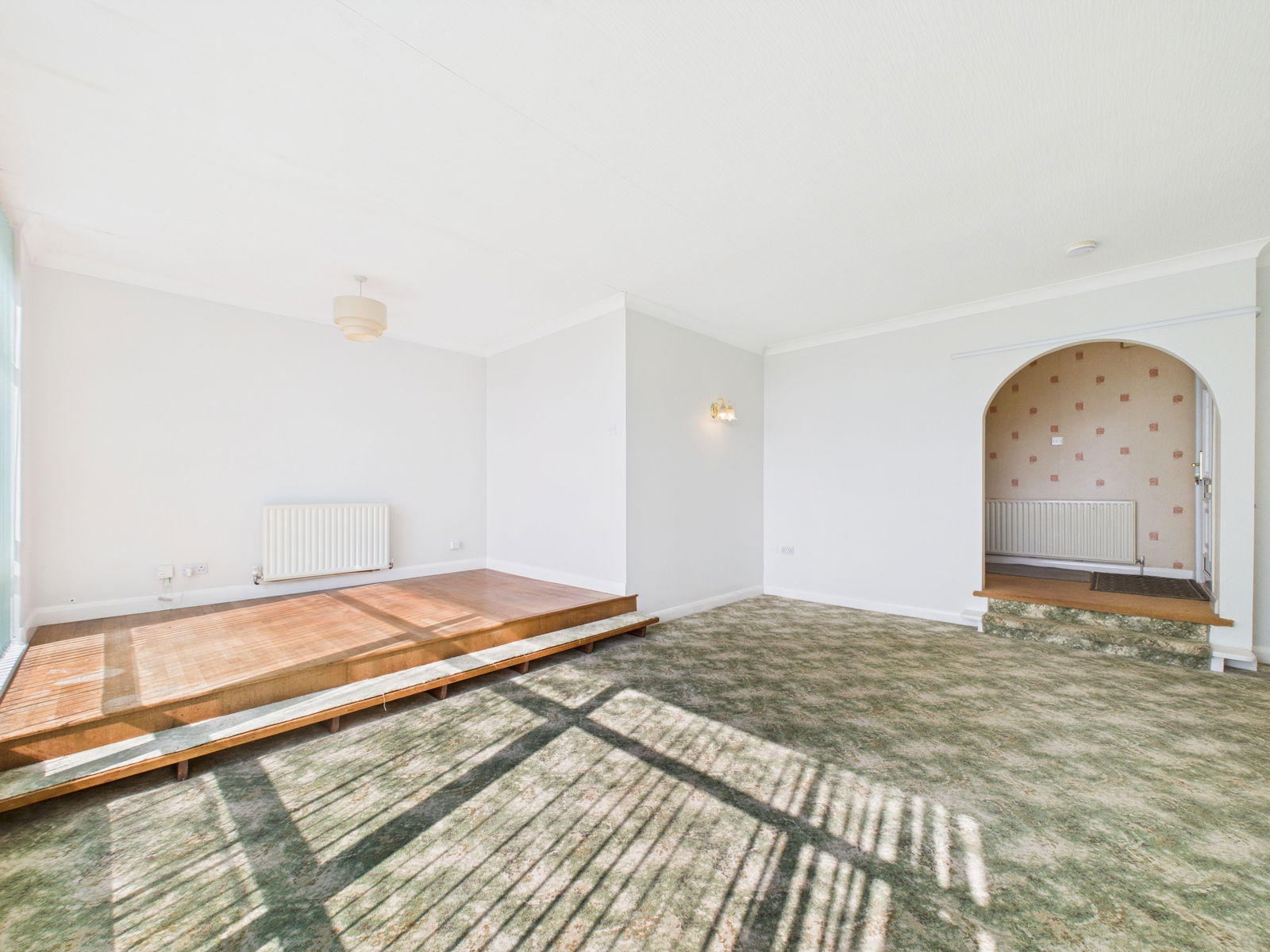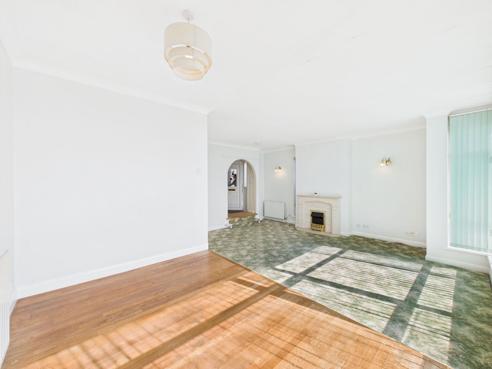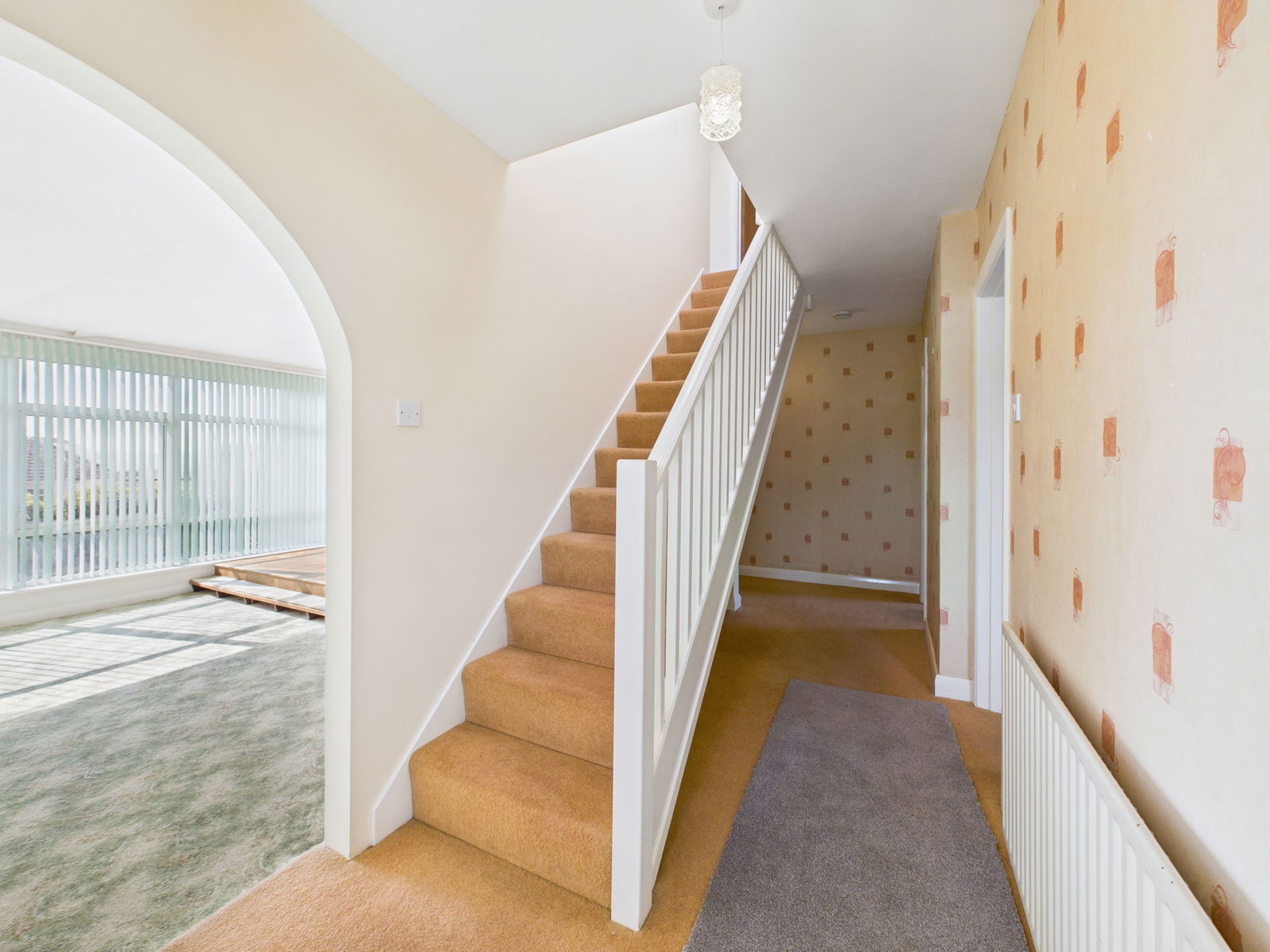 ENTRANCE A uPVC double glazed front door opens into a spacious and inviting entrance hallway. Bright and airy, it features a deep fitted storage cupboard, gas central heating radiator, and easy access to the main living areas and staircase to the first floor.