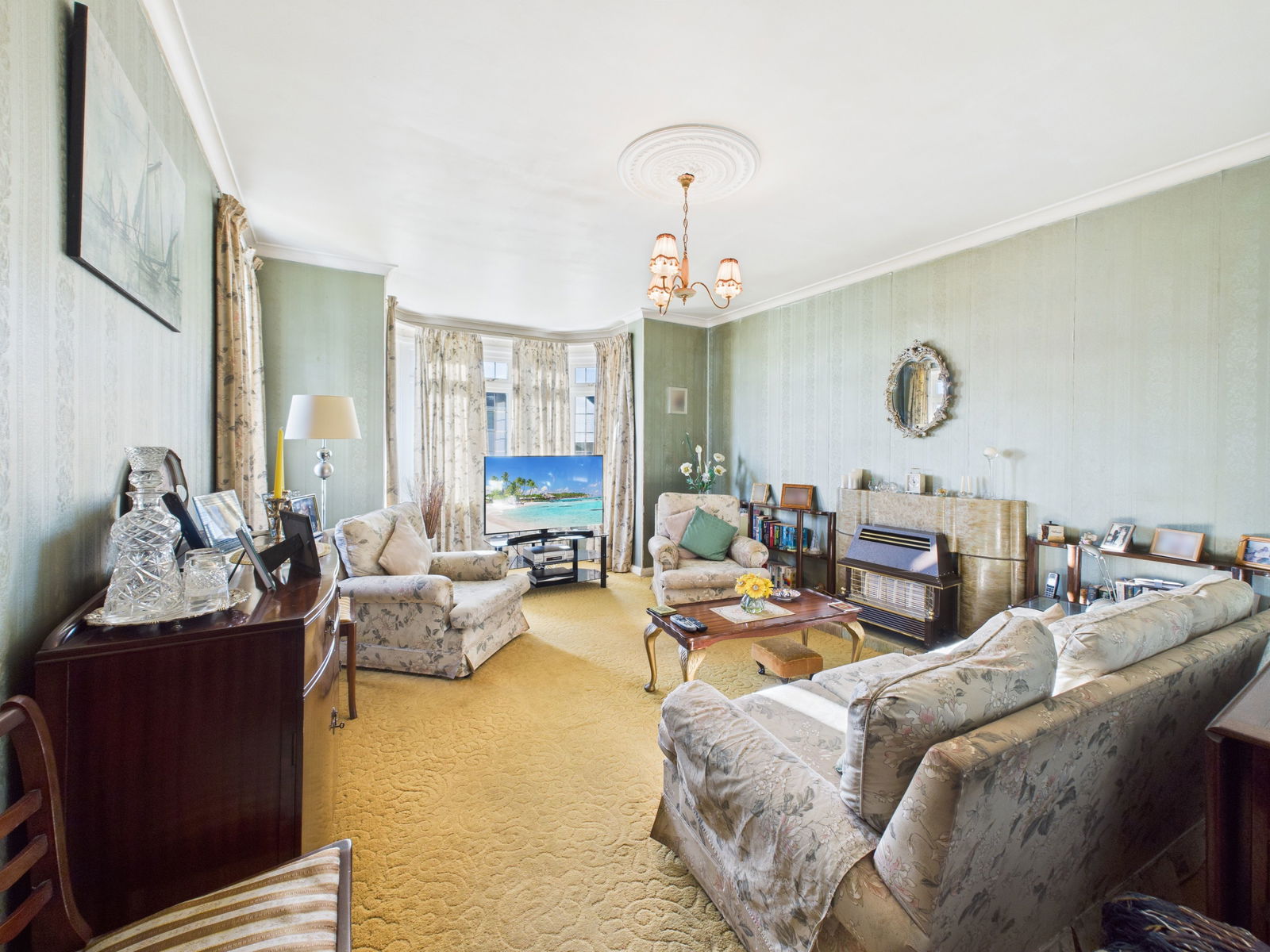 SITTING ROOM Stunning 1930's fireplace. Central heating radiator. uPVC double glazed bay window taking in delightful sea views.