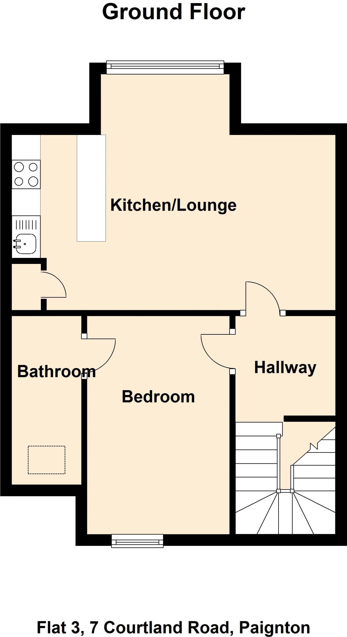 COMMUNAL ENTRANCE HALLWAY Shared entrance with stairs rising to the first floor landing and a private front door into Flat 3.