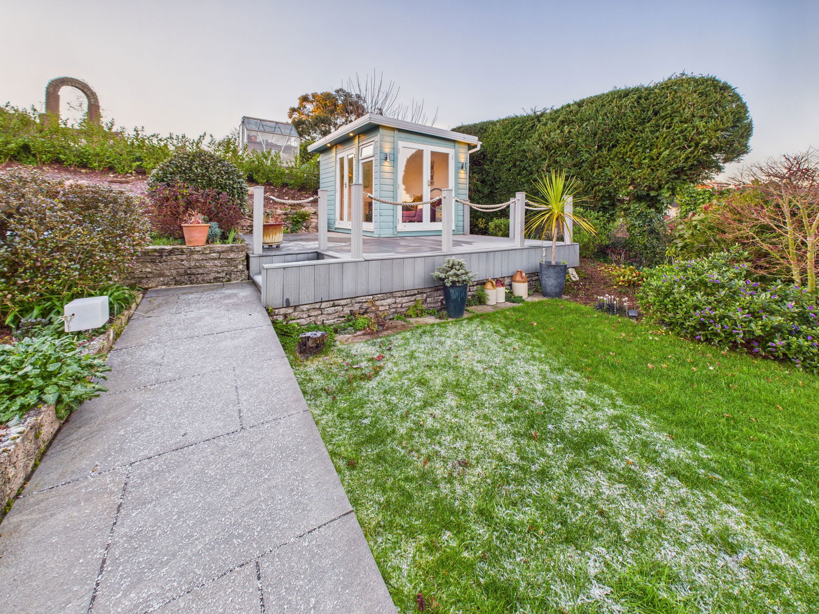 REAR GARDEN The property enjoys a sun soaked west facing rear garden thoughtfully designed for ease of maintenance. The garden features a patio area ideal for alfresco dining, a composite decking area with a timber built summer house complete with electricity perfect for a home office, reading nook or hobby room. Additional features include a lawned section, a variety of mature plants and shrubs, two greenhouses, a garden shed, and access to the garage.