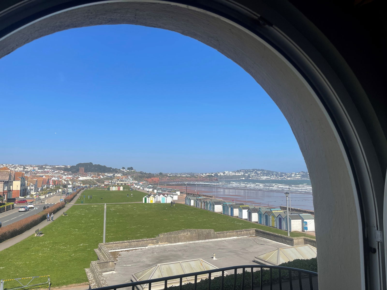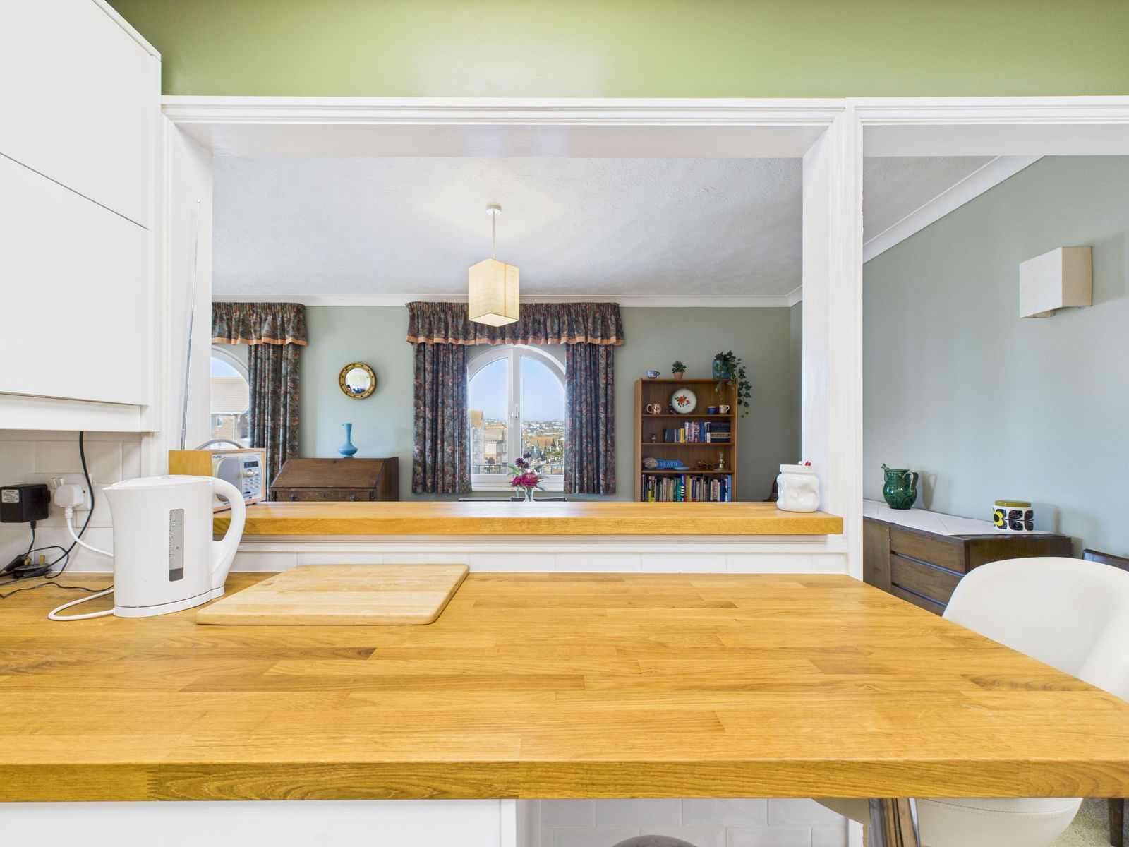 LOUNGE/DINER An incredibly bright and spacious living room with phenomenal sea views across Preston beach and out across to Thatchers Rock, Torquay. A feature electric fireplace with granite hearth, an arched opening into the kitchen ideal for the two spaces to be integrated as one for entertaining. Tv and internet points, double aspect uPVC double glazing with French doors to the front aspect leading out to the first balcony, further French doors leading out to the second balcony overlooking the sea and further arched windows. Two electric night store heated radiators and another TV aerial socket point.