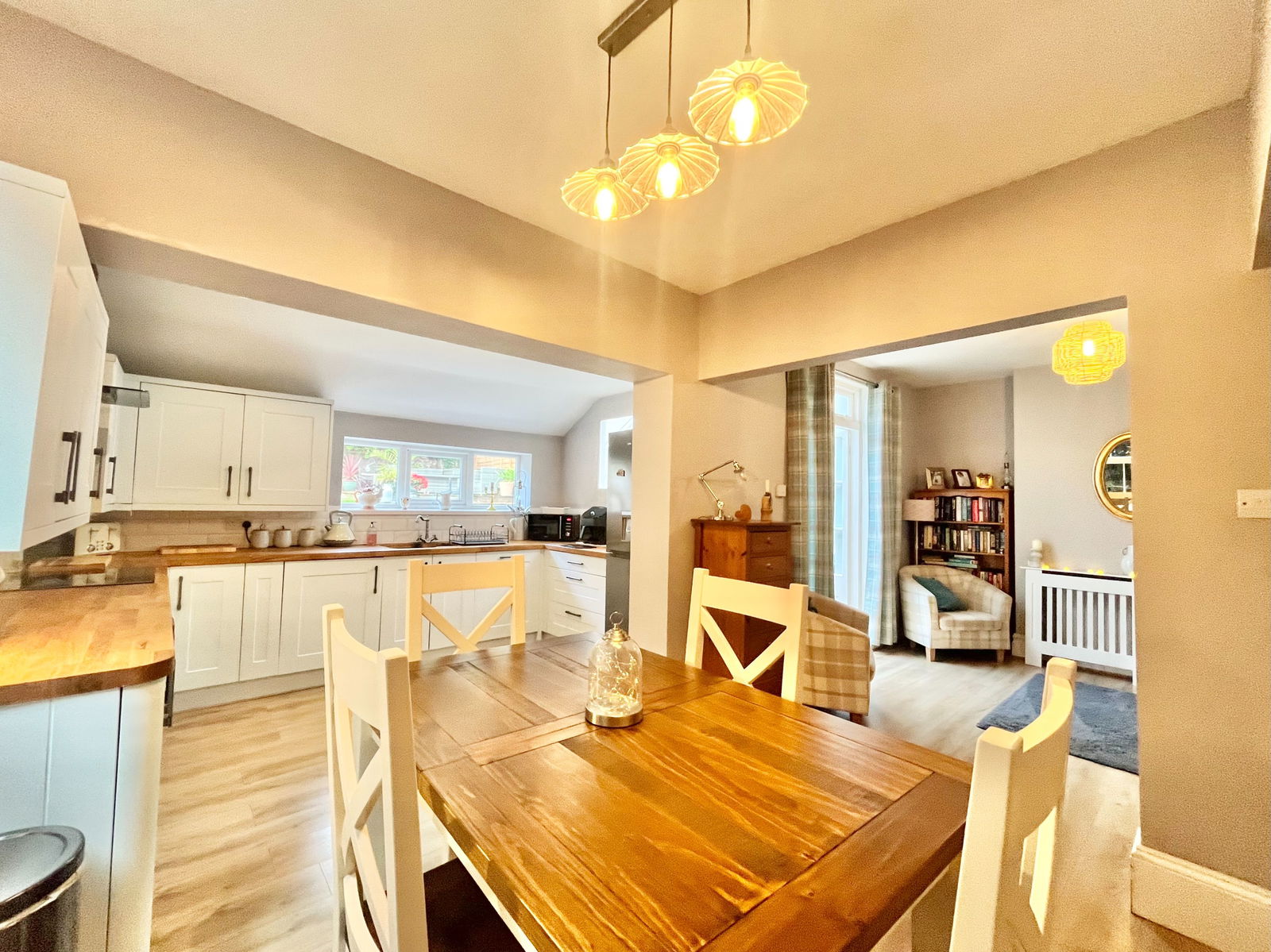 KITCHEN/DINER - 6.69m x 5.65m (21'11" x 18'6") A beautifully finished and large kitchen/diner that opens into the second sitting room perfect for entertaining and modern day living. The kitchen boasts a range of overhead, base and drawer shaker style units with solid oak work surfaces above. A 1 1/2 bowl stainless steel sink unit, an electric single oven with grill integrated and a four ring induction hob with extractor hood above. An integrated dishwasher and space for a fridge freezer. Complimentary tile backsplash, space for a 6/8 seater dining table, uPVC double glazed sash window, gas central heated radiator and an archway opening into:-
