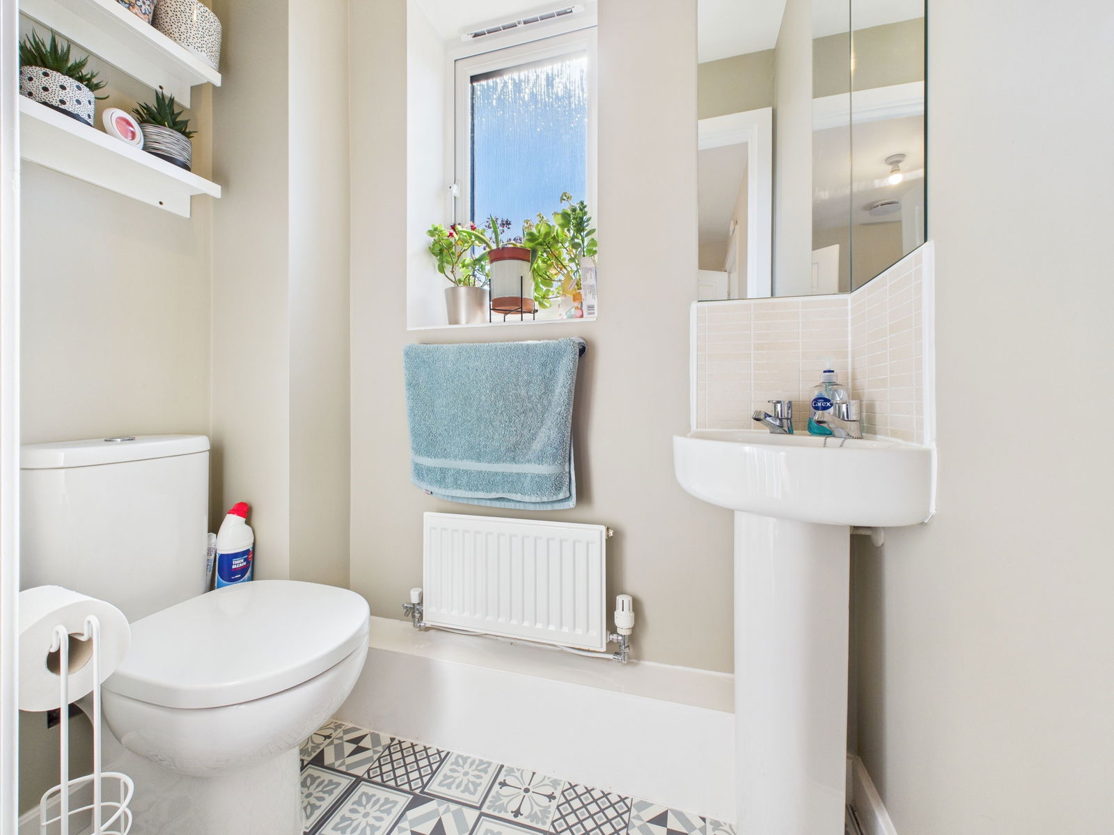 CLOAKROOM A handy downstairs cloakroom with a low level flush WC and a pedestal wash hand basin. UPVC obscure double glazed window and a gas central heated radiator.